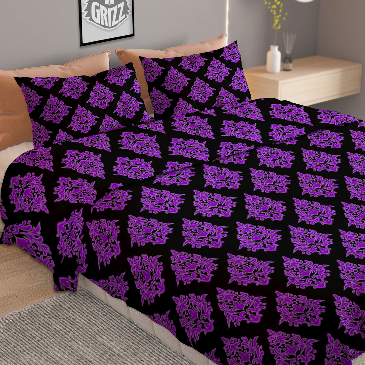 Damask Purple And Black Print Pattern Duvet Cover Bedding Set