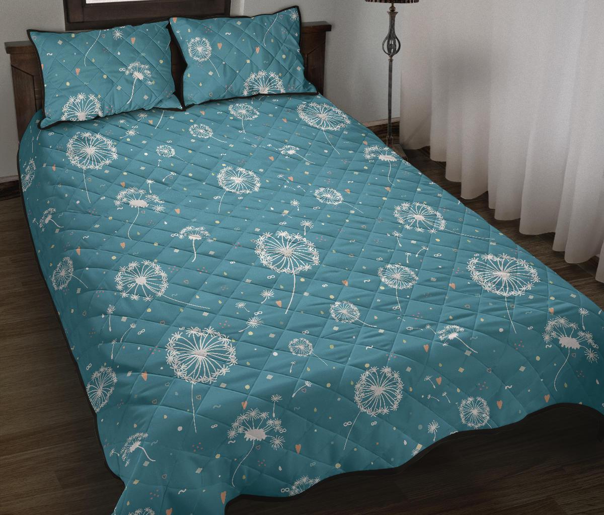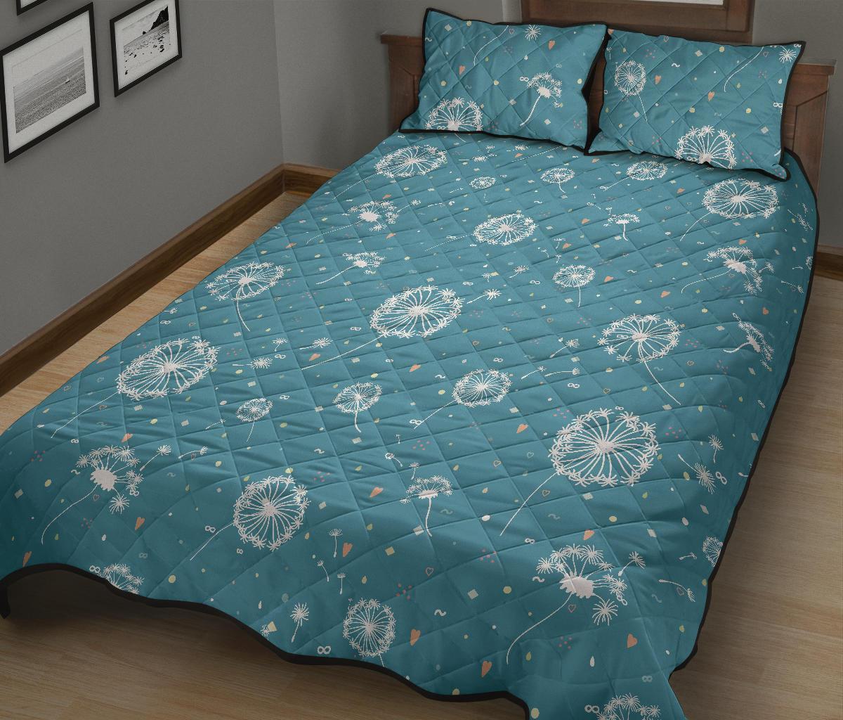 Dandelion Blue Pattern Print Bed Set Quilt