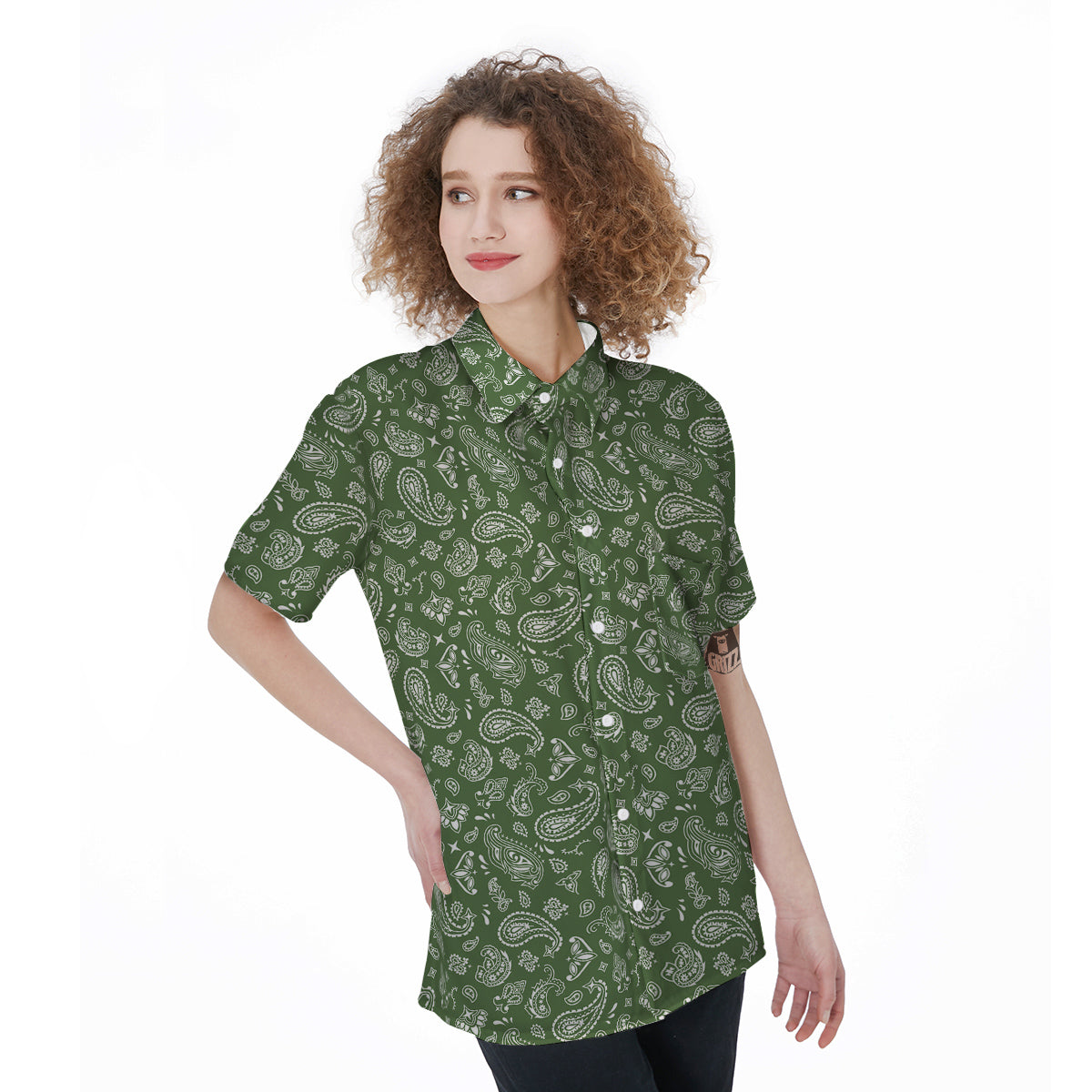 Looking for a unique women's short sleeve shirts? Check out our Dark Green Paisley Bandana Print Women's Short Sleeve Shirts at Grizzshopping. Our women's short sleeve shirts are handcrafted to the highest quality standards that custom made for you