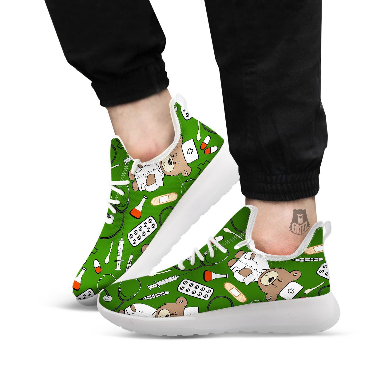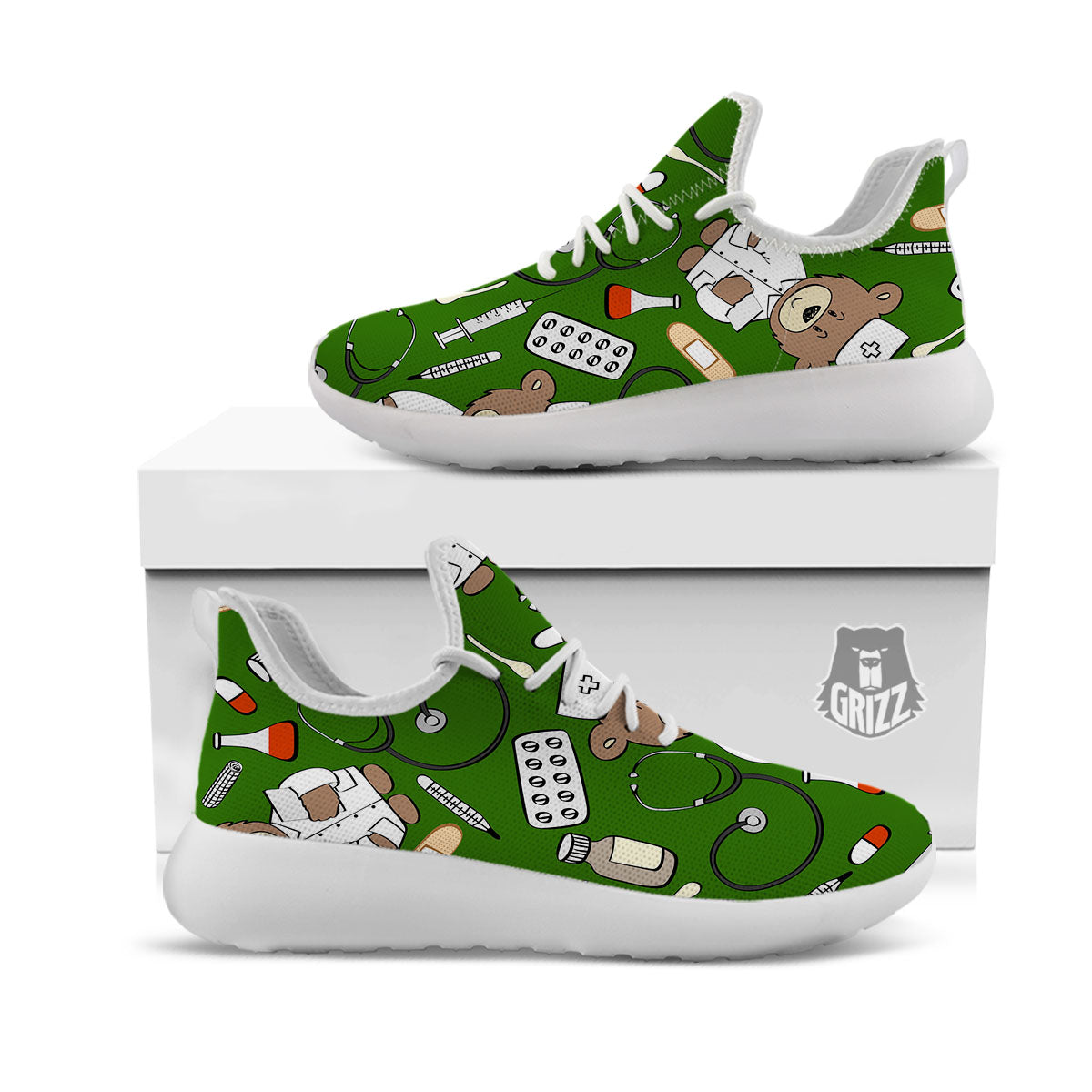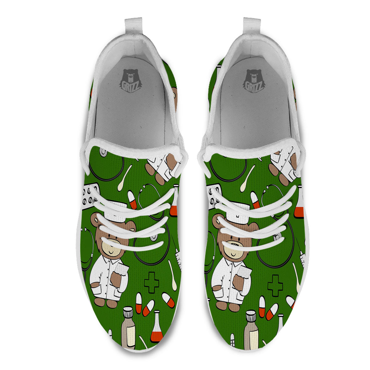 Dark Green Teddy Bear Nurse White Athletic Shoes
