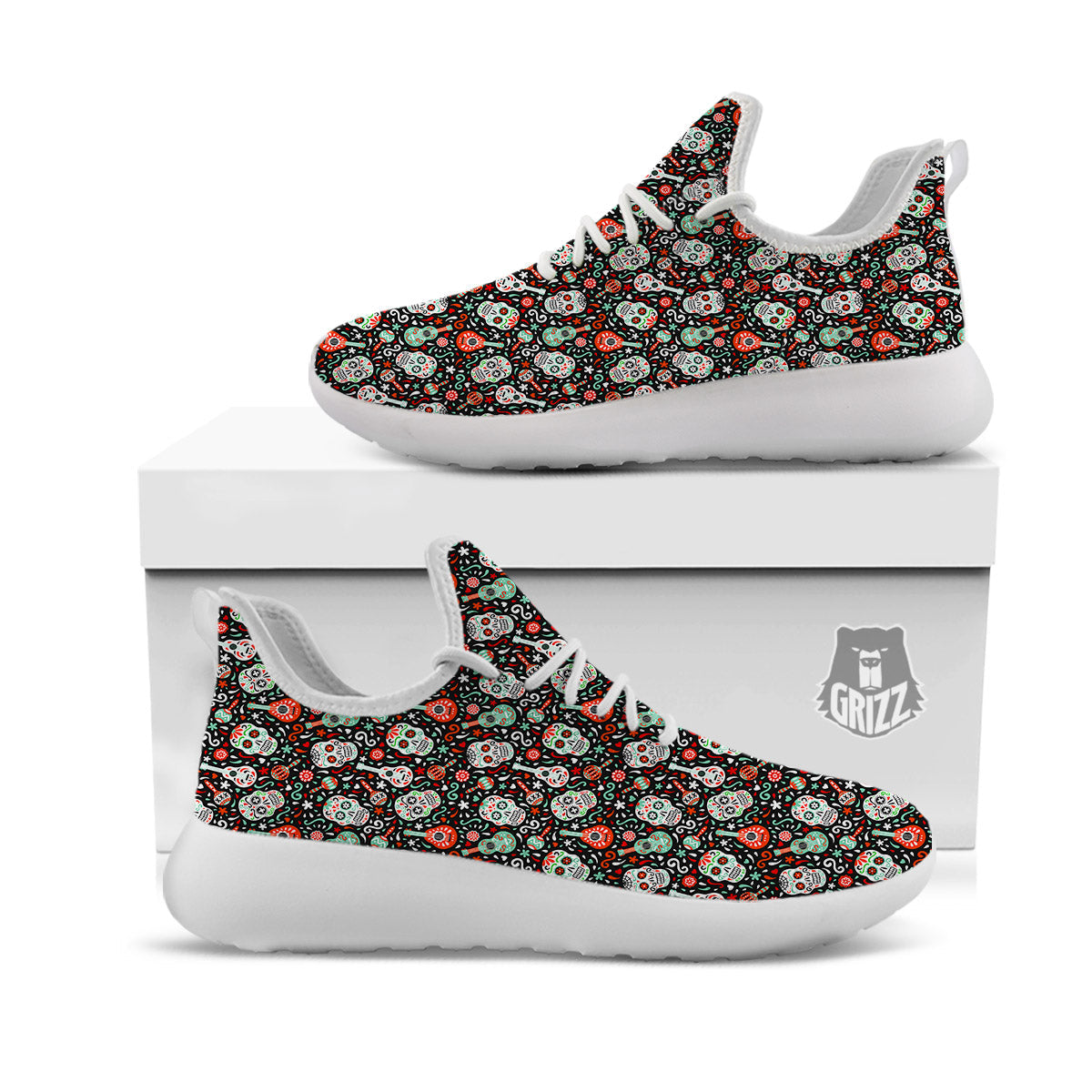 Day Of The Dead Calaveras Print Pattern White Athletic Shoes