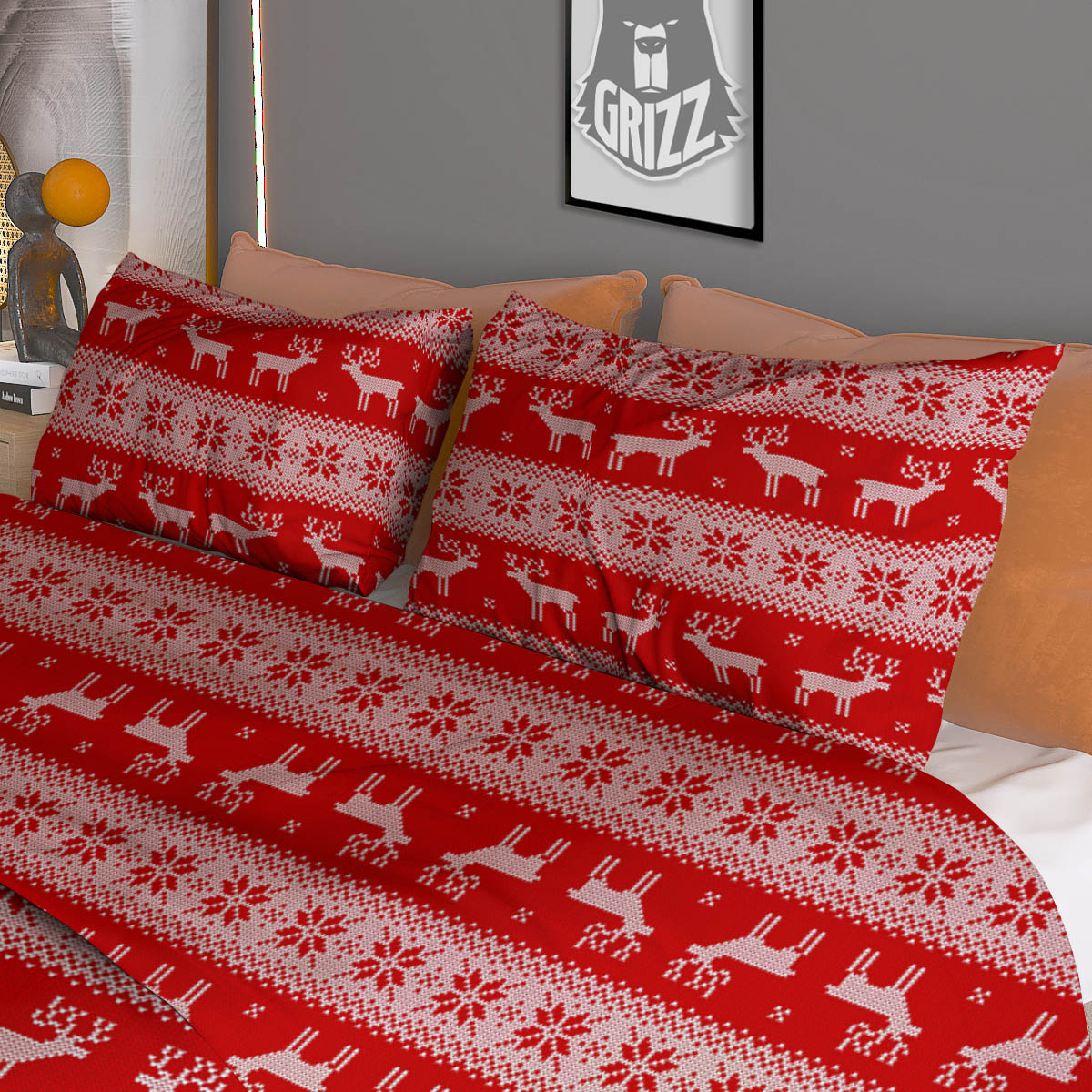Deer Knitted Christmas Print Pattern Duvet Cover Bedding Set
