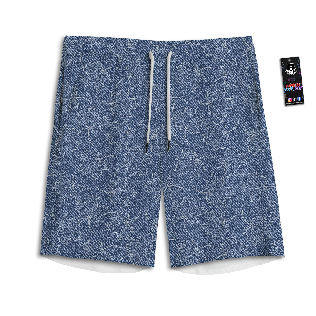 Denim Jeans Maple Leaf Print Pattern Men's Athletic Shorts
