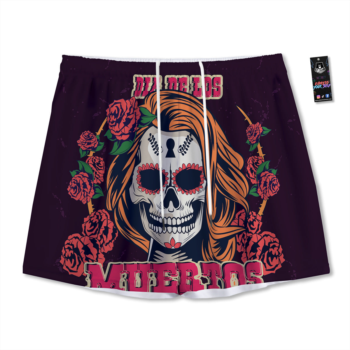 Dia De Los Muertos Calavera Girl Print Mesh Shorts