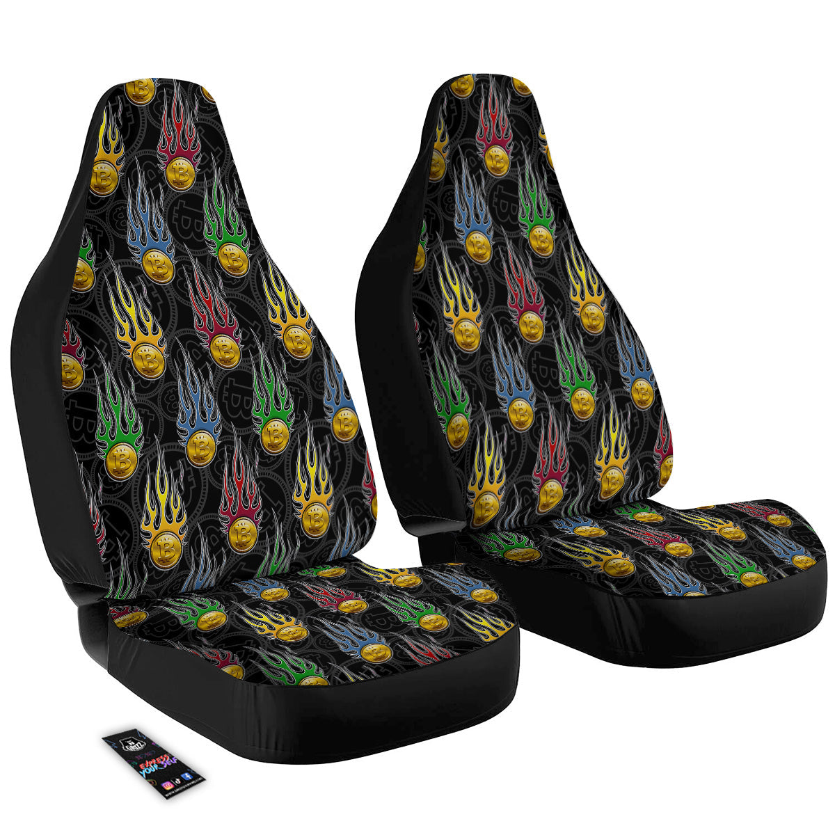 Digital Bitcoin On Fire Print Pattern Car Seat Covers