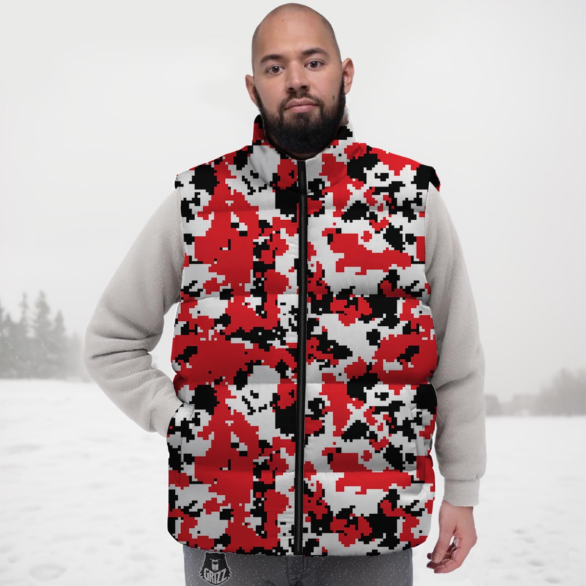 Looking for a unique Down Vest? Check out our Digital Camo Red White And Black Print Pattern Down Vest at Grizzshopping. Our down vest are handcrafted to the highest quality standards that custom made for you
