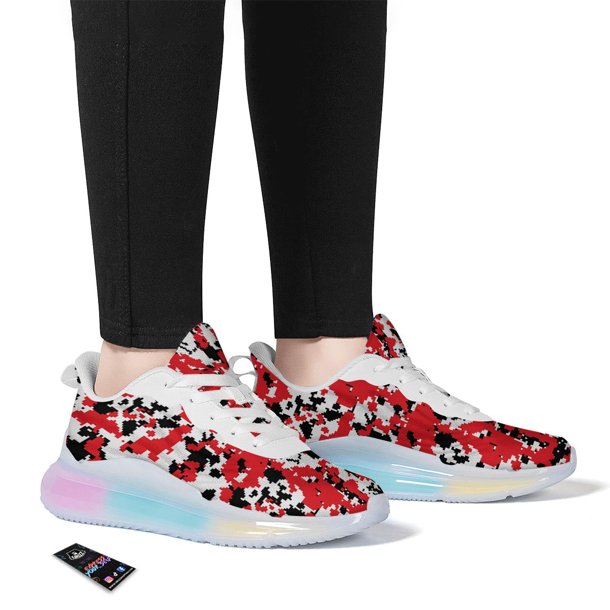 Digital Camo Red White And Black Print Pattern Running Sneakers