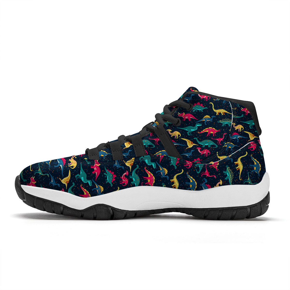 Dinosaur Colorful Print Pattern Black Bball Shoes