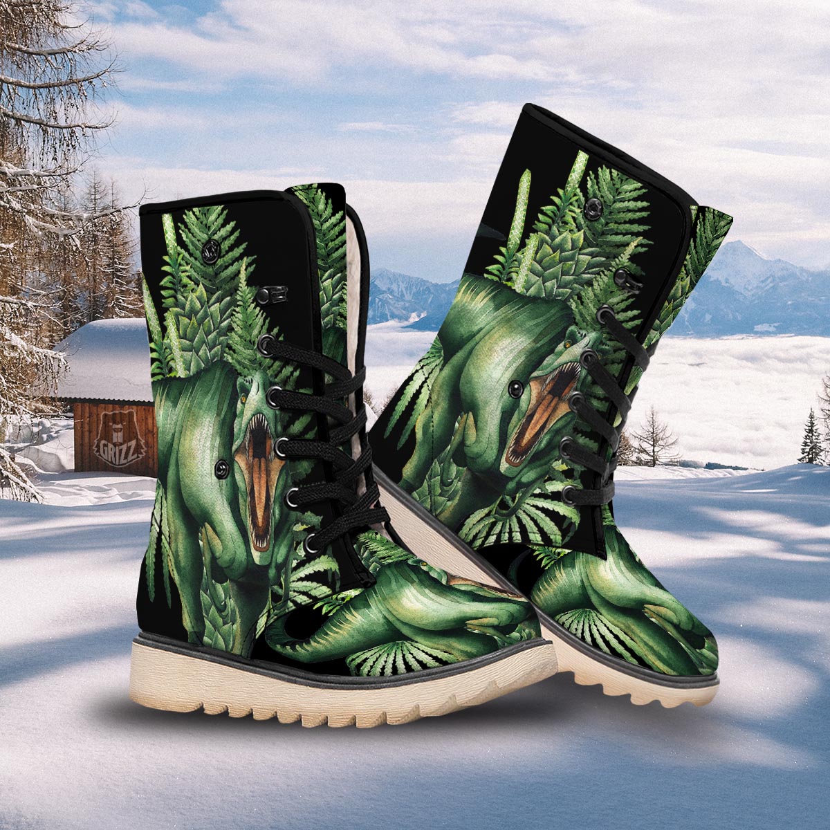 Dinosaur T Rex And Jurassic Plants Print Snow Boots