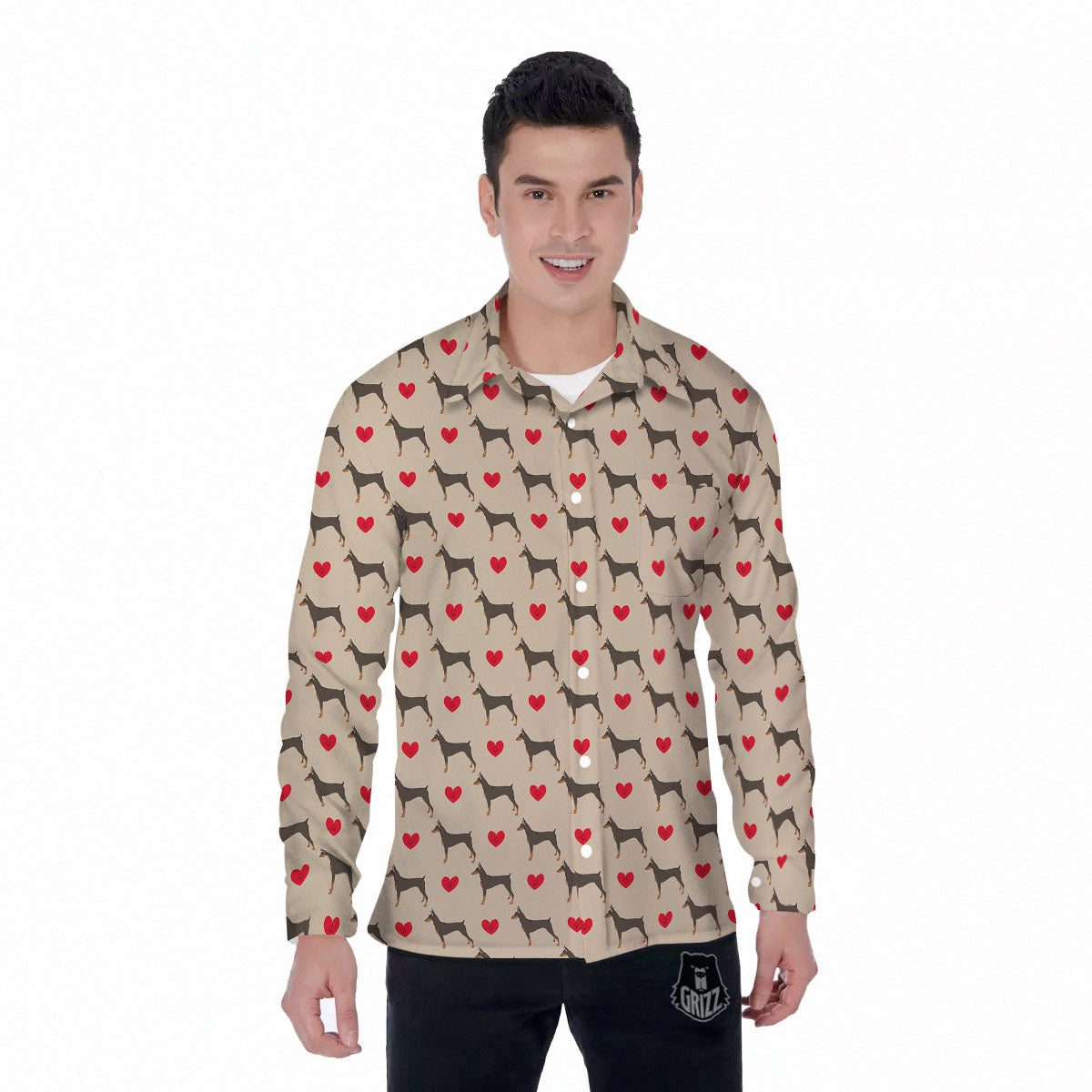 Dobermann Heart Print Pattern Men's Long Sleeve Shirts