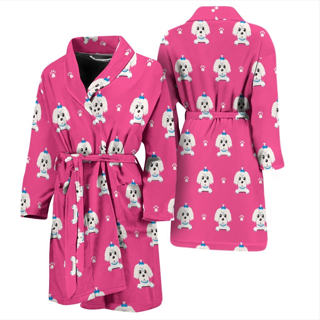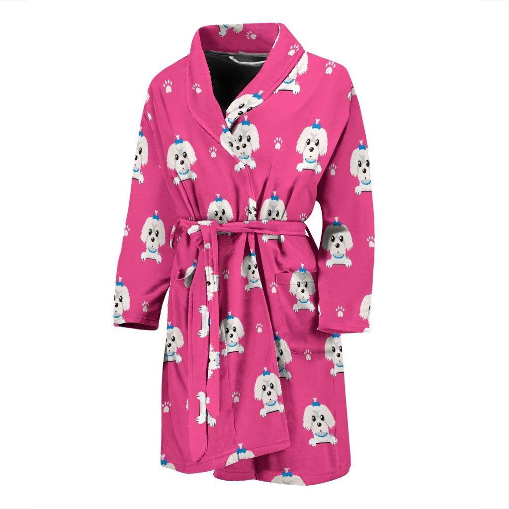 Dog Maltese Puppy Pattern Print Men Long Robe