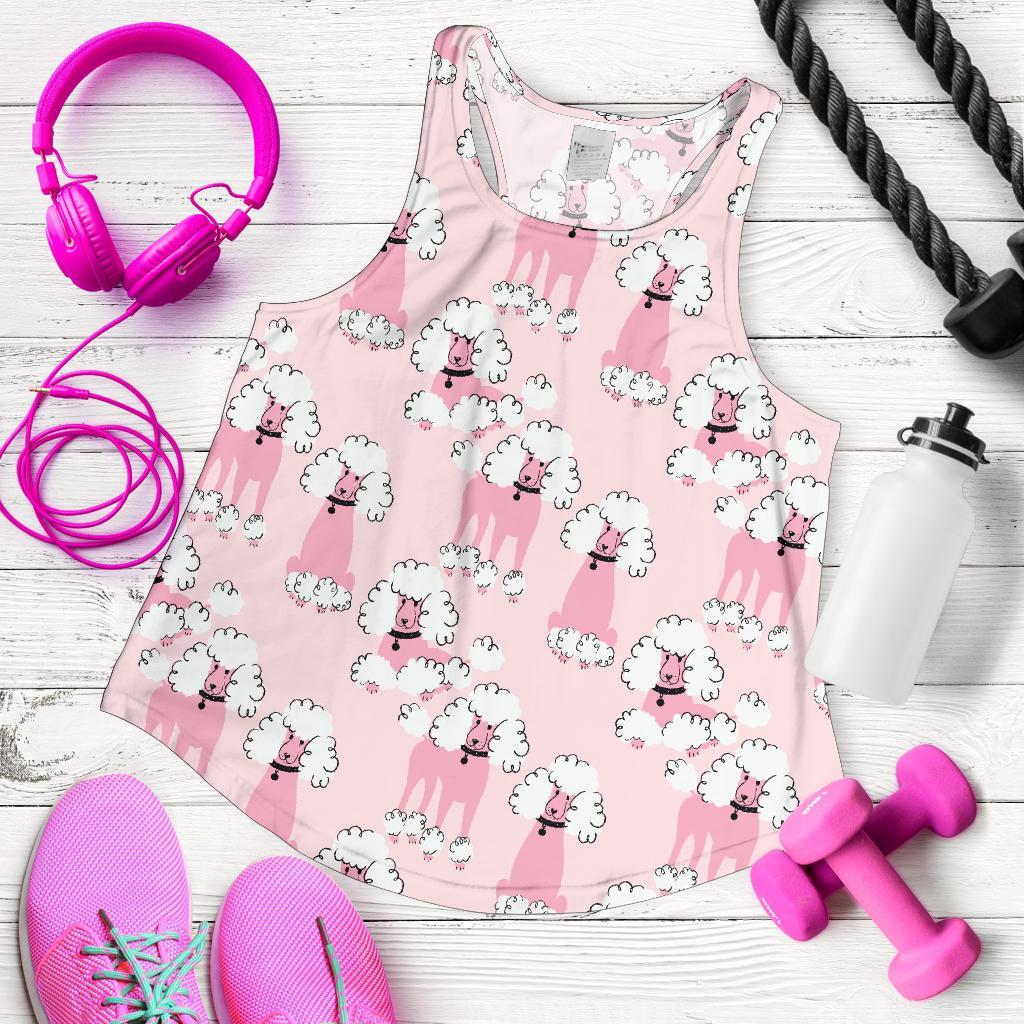 Dog Poodle Print Pattern Women's Racerback Tank Tops