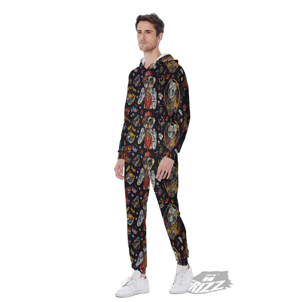 Dogs Old School Tattoo Print Pattern Men's Jumpsuit