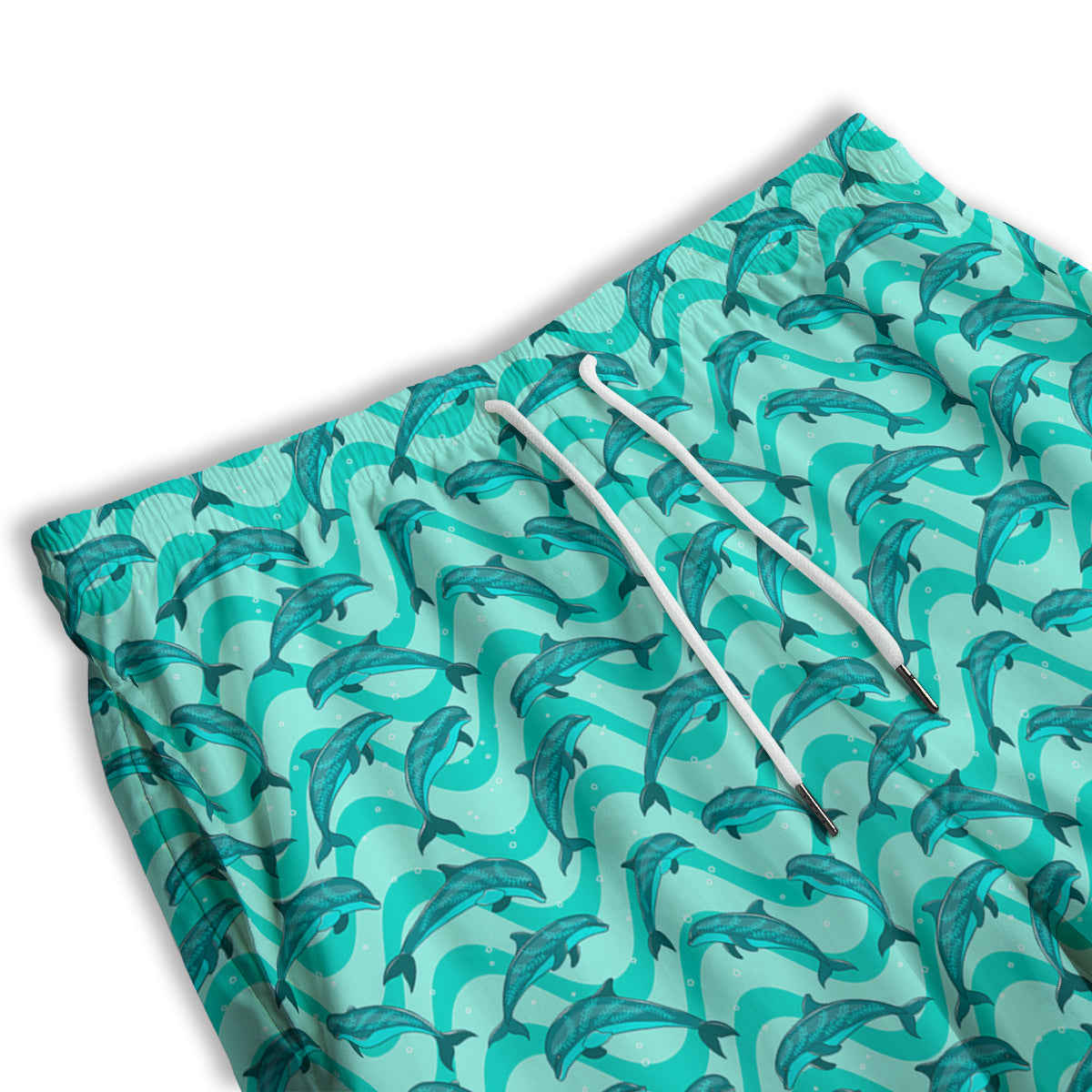 Dolphins In The Ocean Cute Print Pattern Men's Athletic Shorts