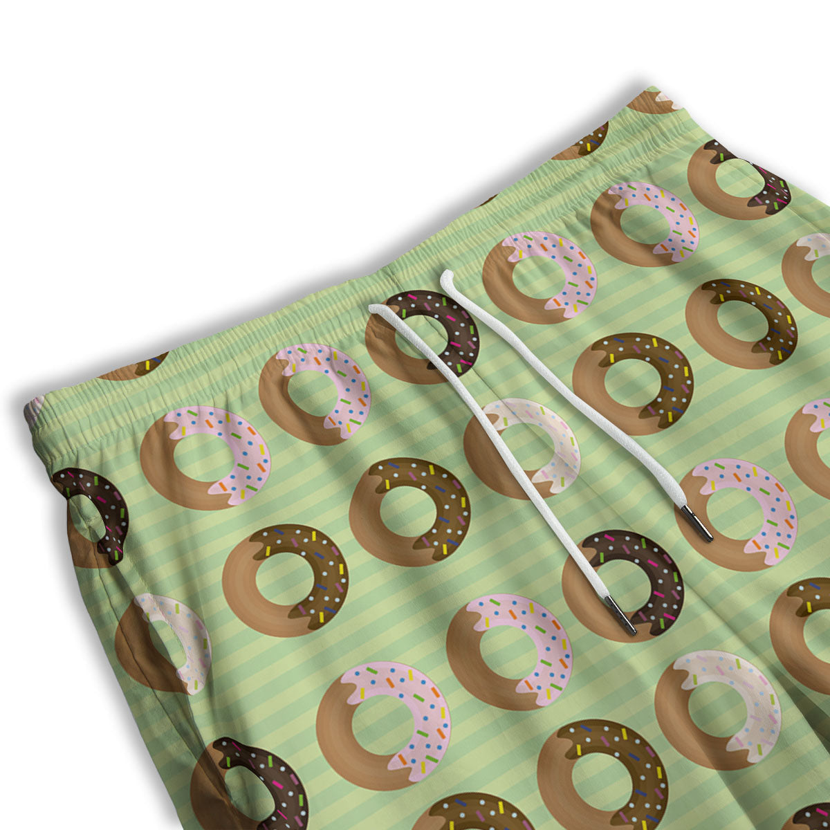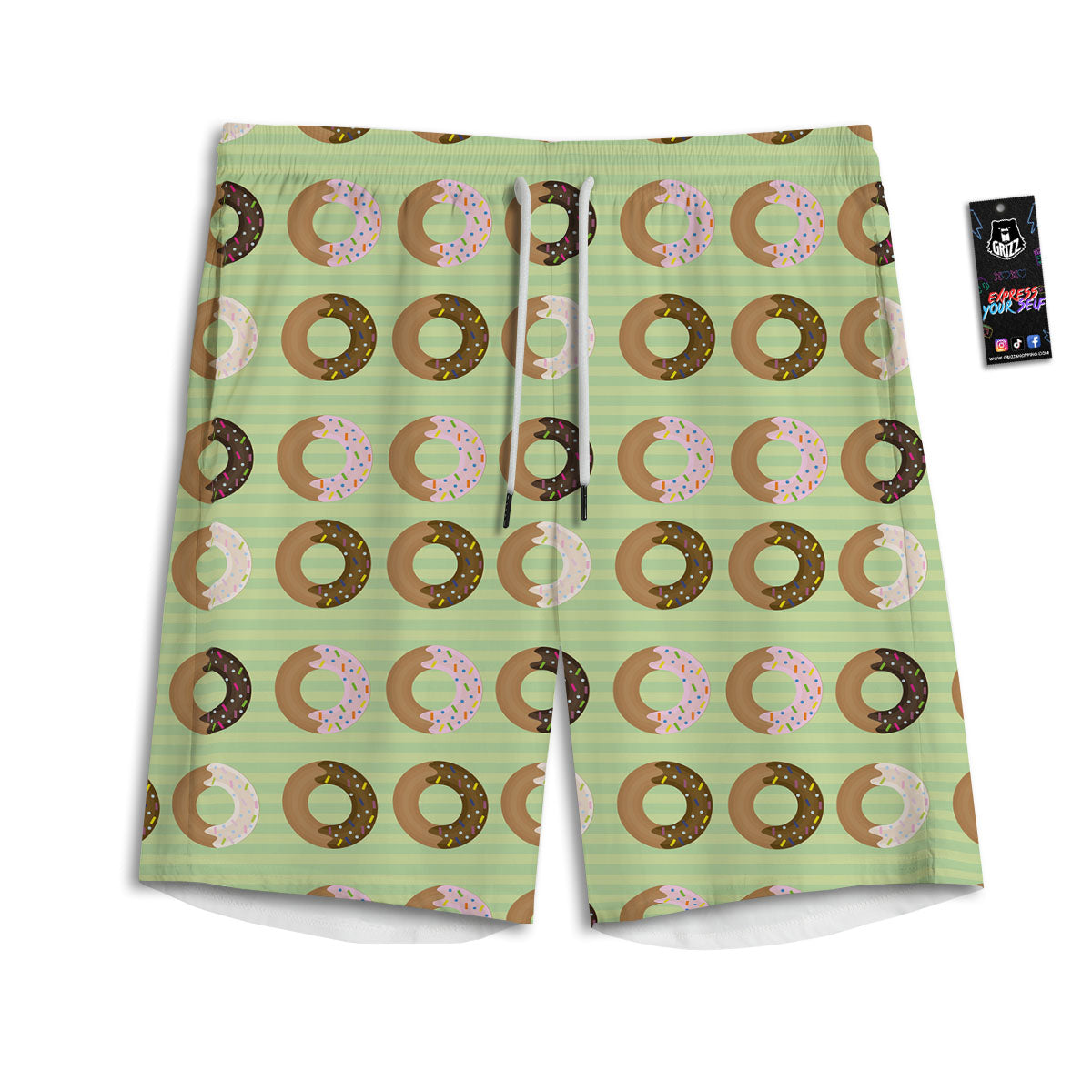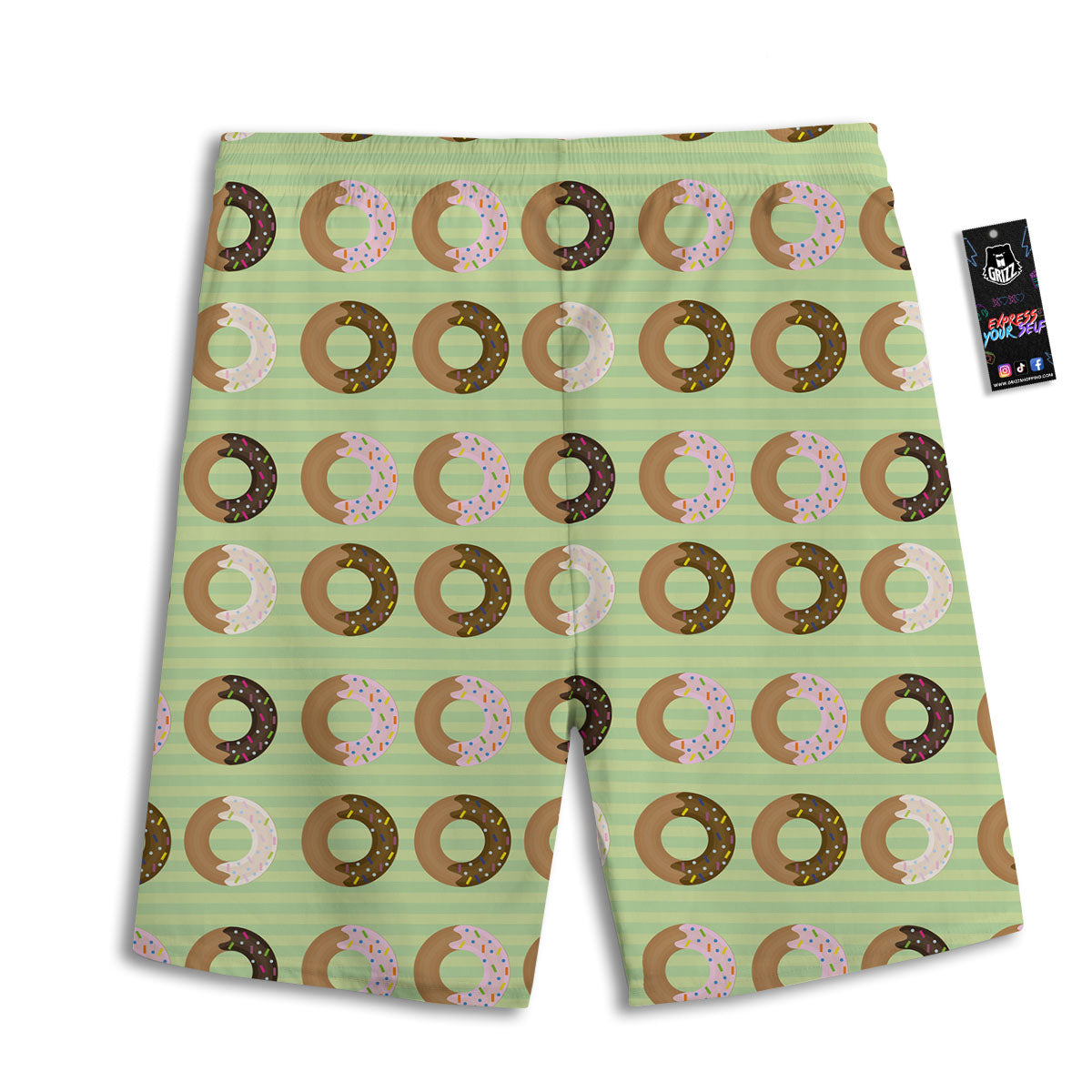 Donut Striped Green Print Pattern Men's Athletic Shorts