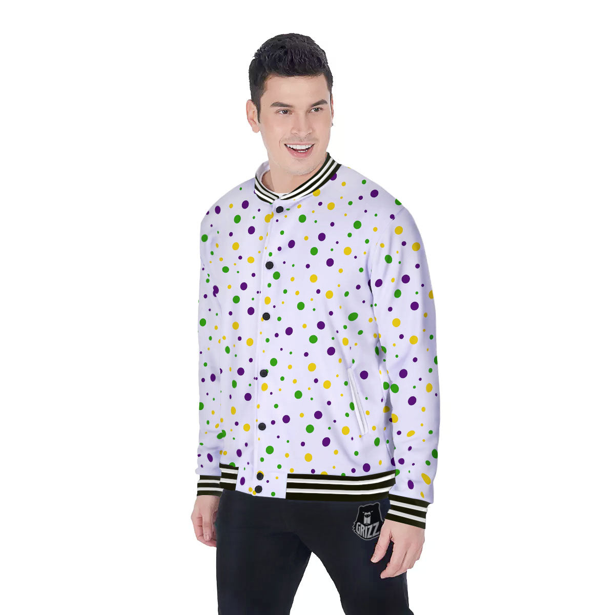Dot Mardi Gras Print Pattern Baseball Jacket
