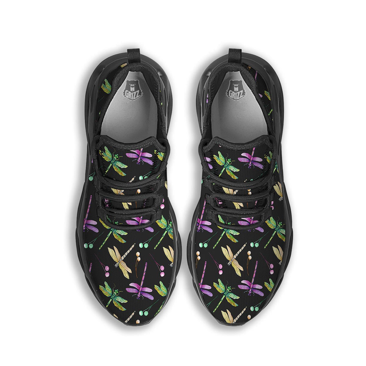 Dragonfly Black Purple And Teal Print Pattern Black Running Shoes