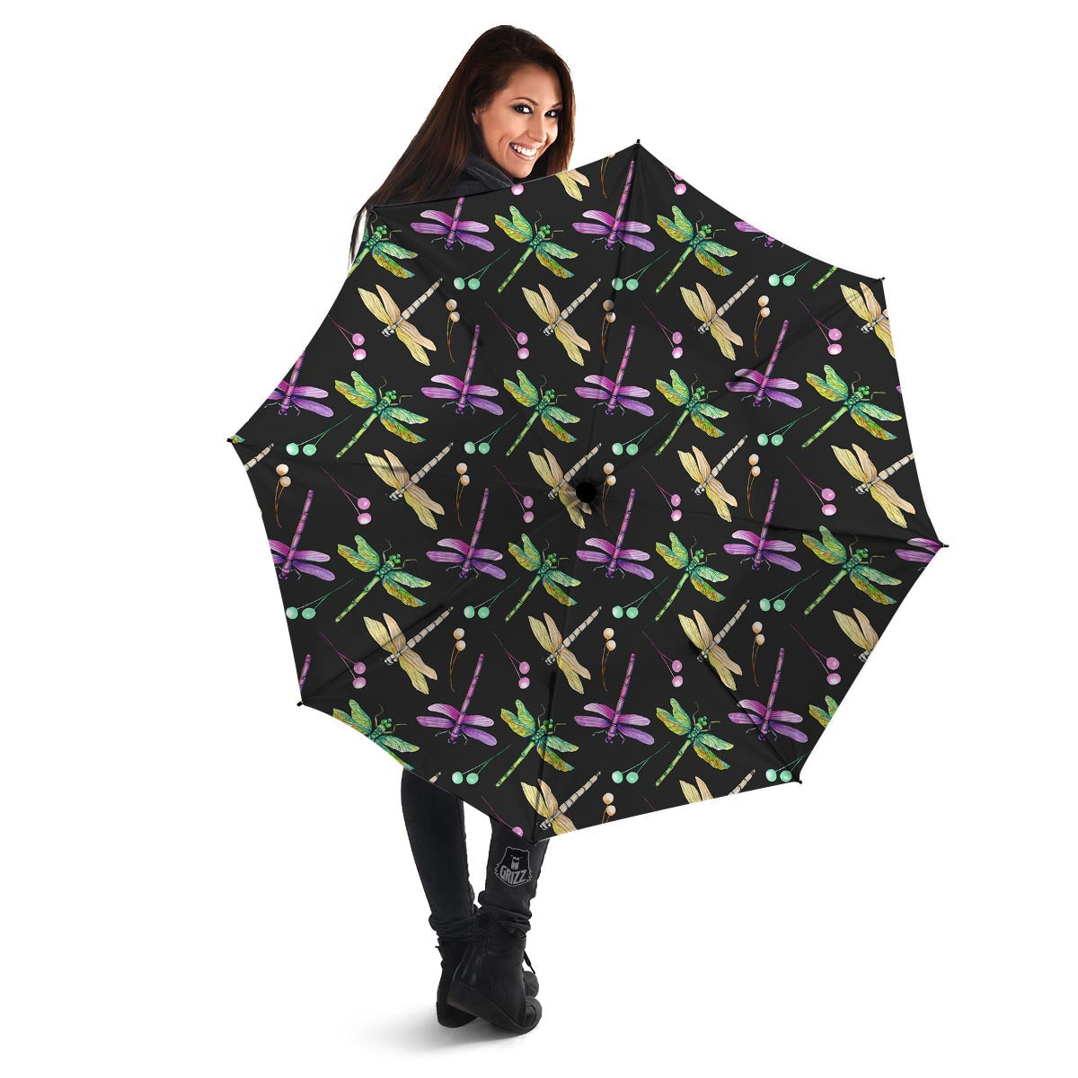 Dragonfly Black Purple And Teal Print Pattern Umbrella