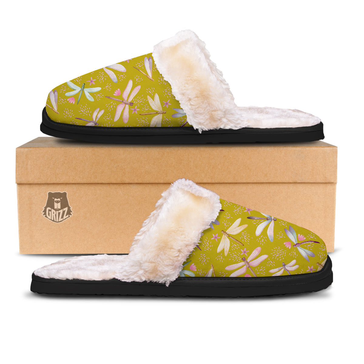 Dragonfly Yellow Watercolor Print Pattern Slippers