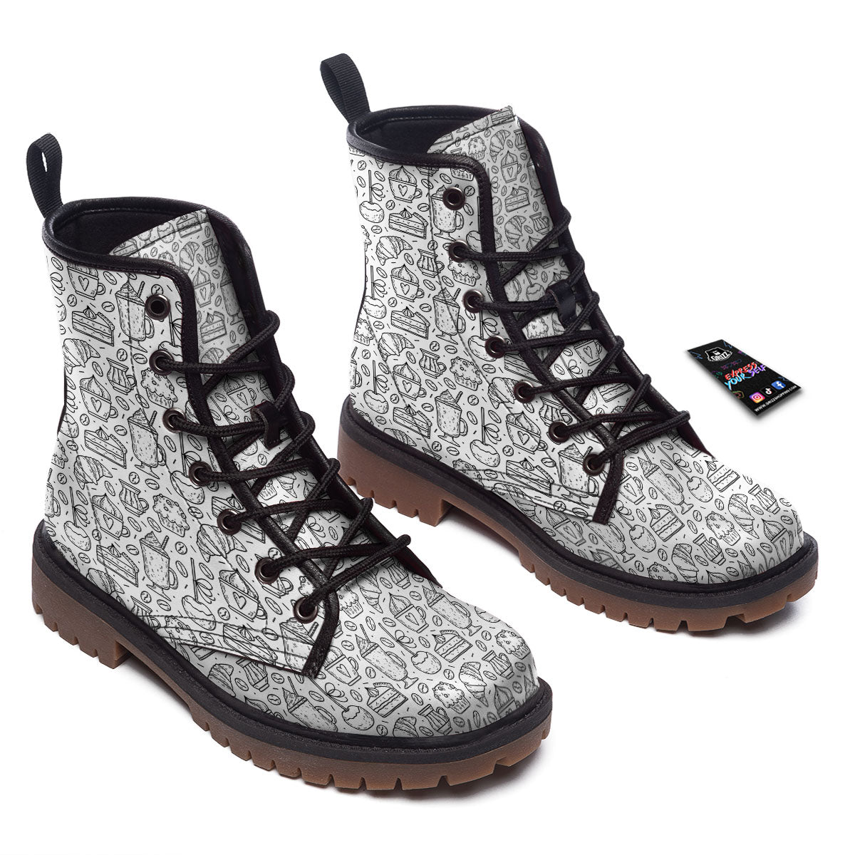 Drawing Dessert And Coffee Print Pattern Work Boots
