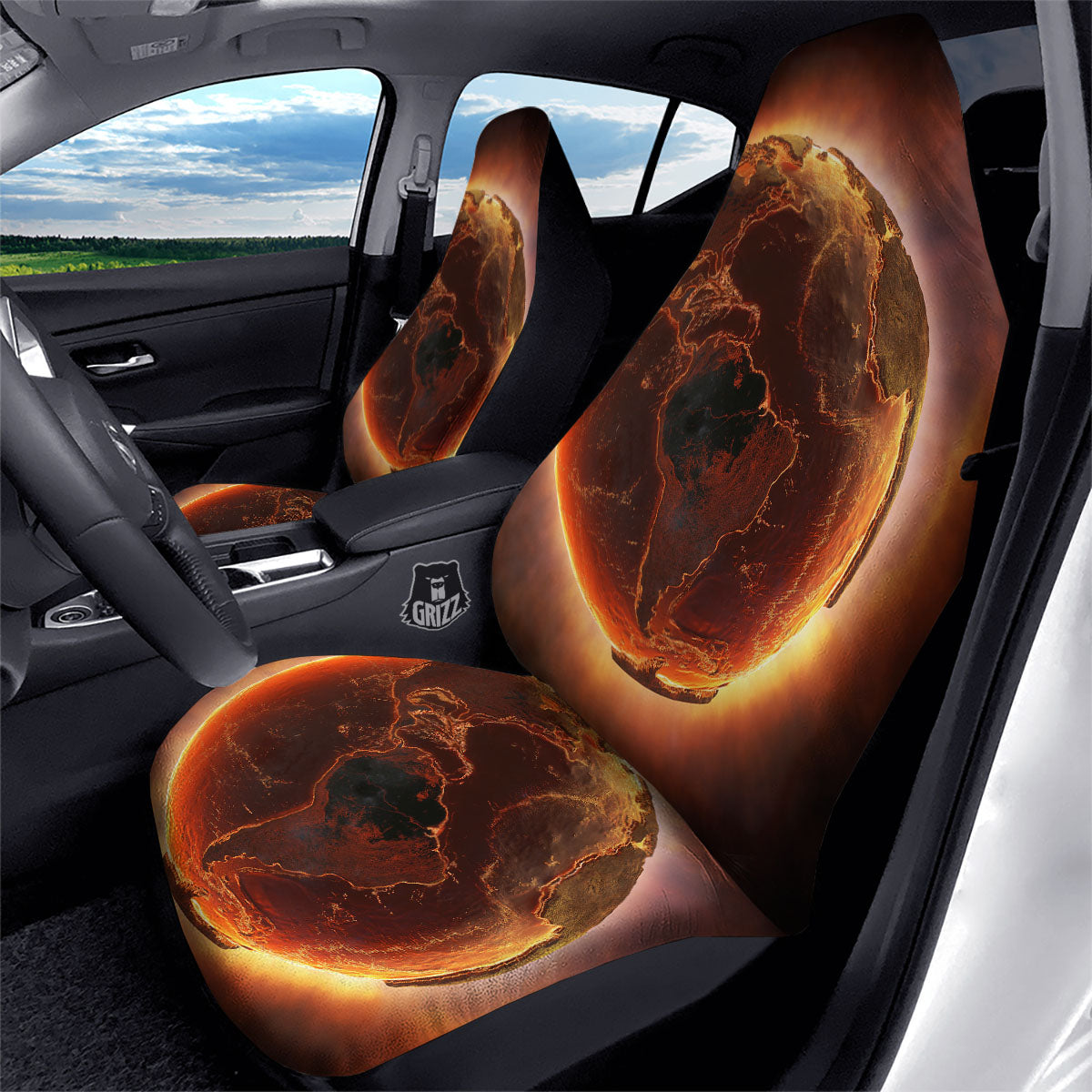 Looking for a unique car seat cover? Check out our Earth Burning Print Car Seat Covers at Grizzshopping. Our car seat cover are handcrafted to the highest quality standards that custom made for you Constructed with high quality polyester micro-fiber fabric for maximum durability and comfort.
