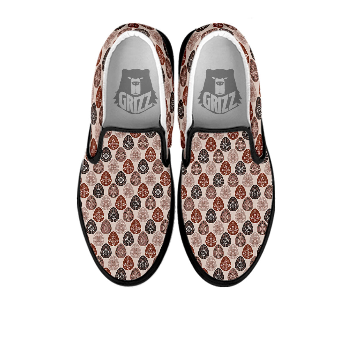 Easter Eggs Bohemian Print Pattern Black Slip On Shoes