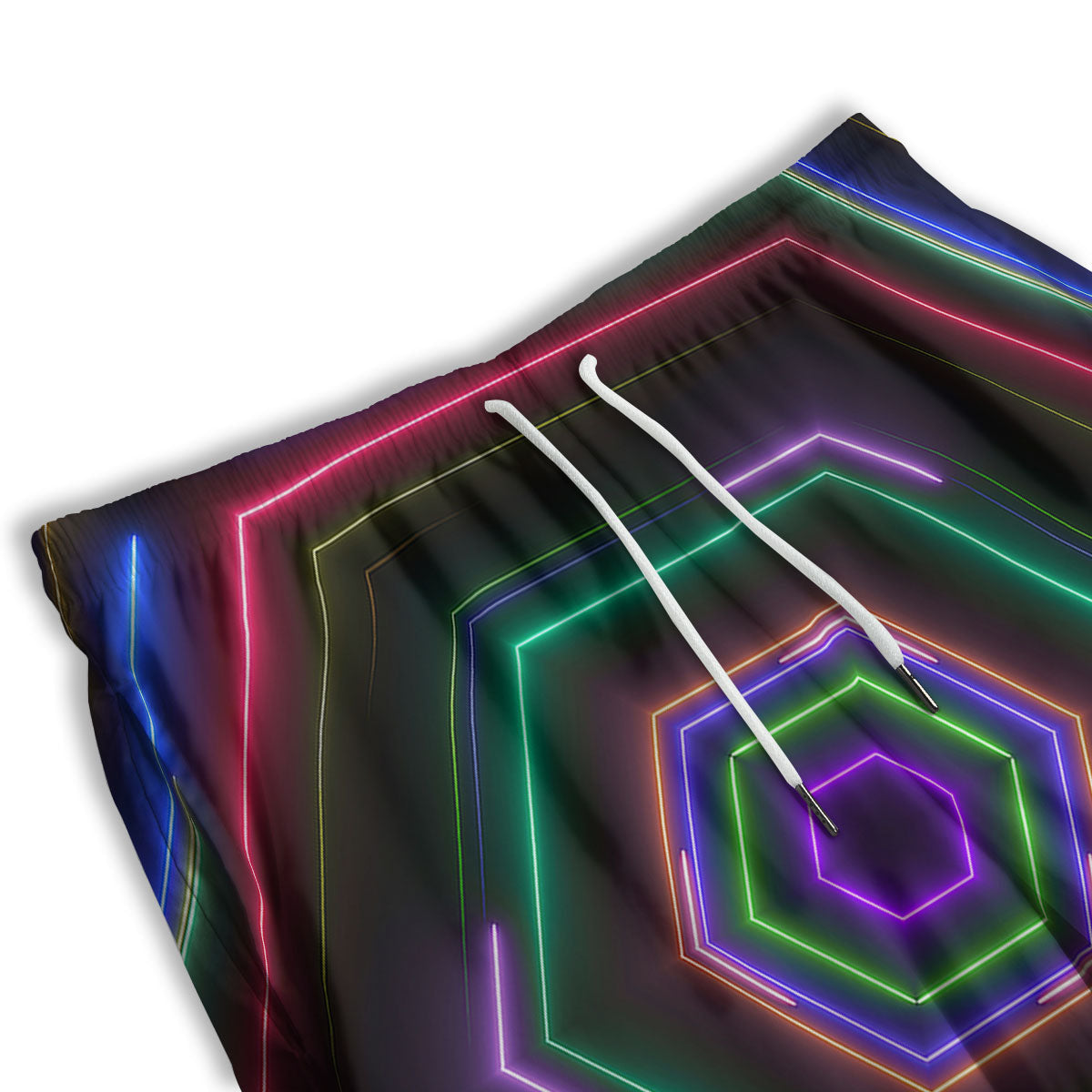 EDM Geometric Green Light Print Men's Athletic Shorts
