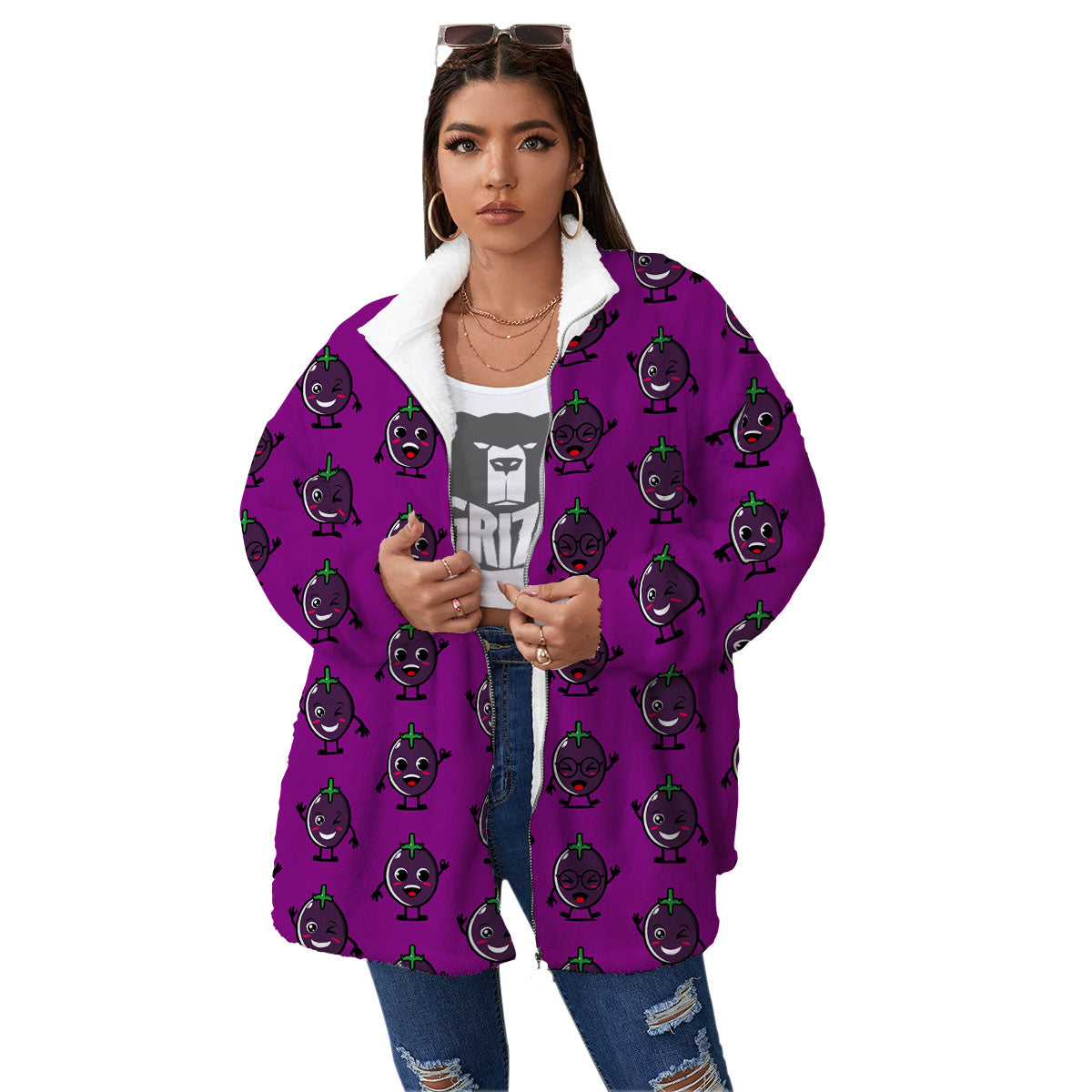 Eggplant Cartoon Print Pattern Women's Sherpa Jacket