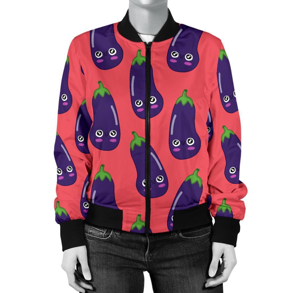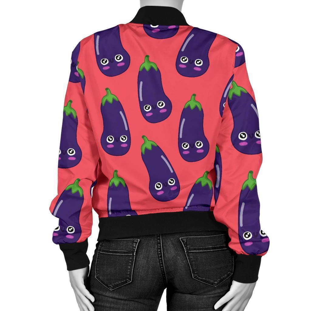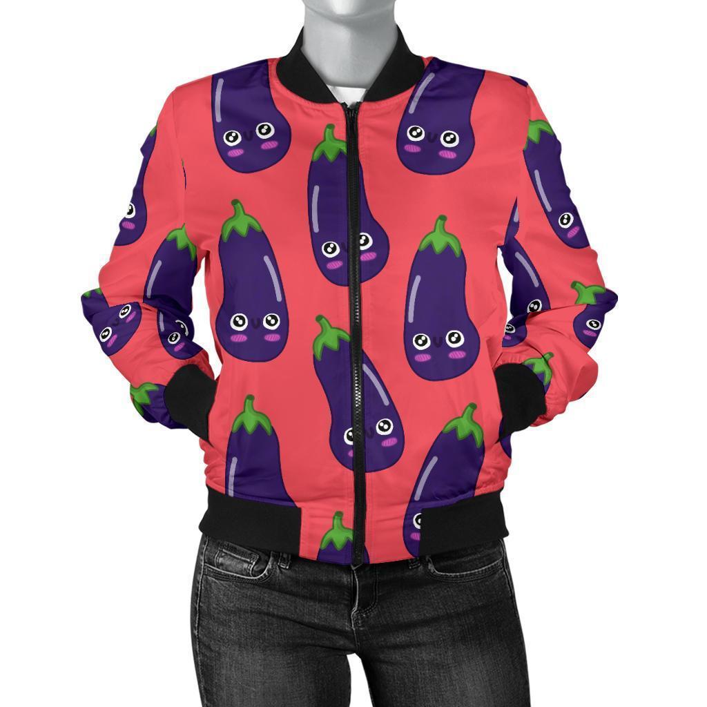 Eggplant Funny Print Pattern Women Casual Bomber Jacket