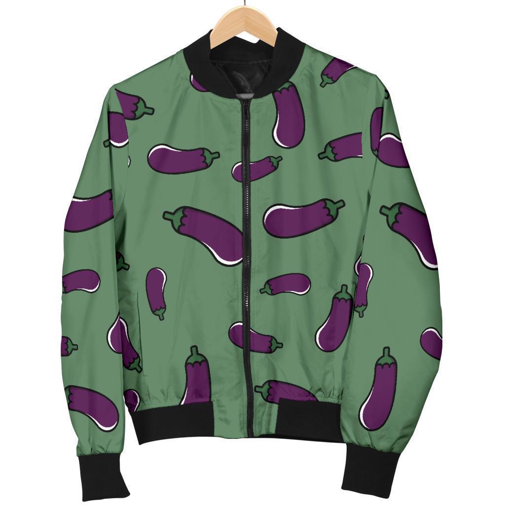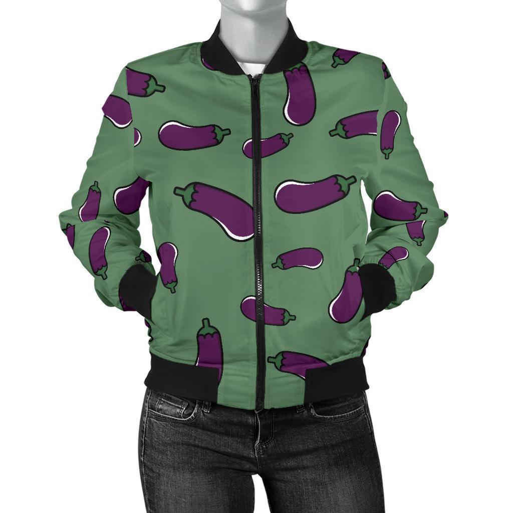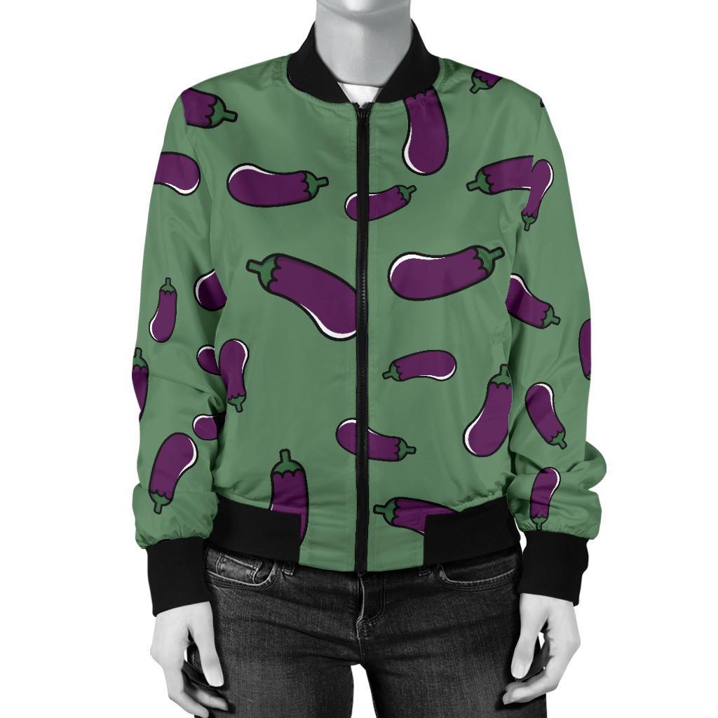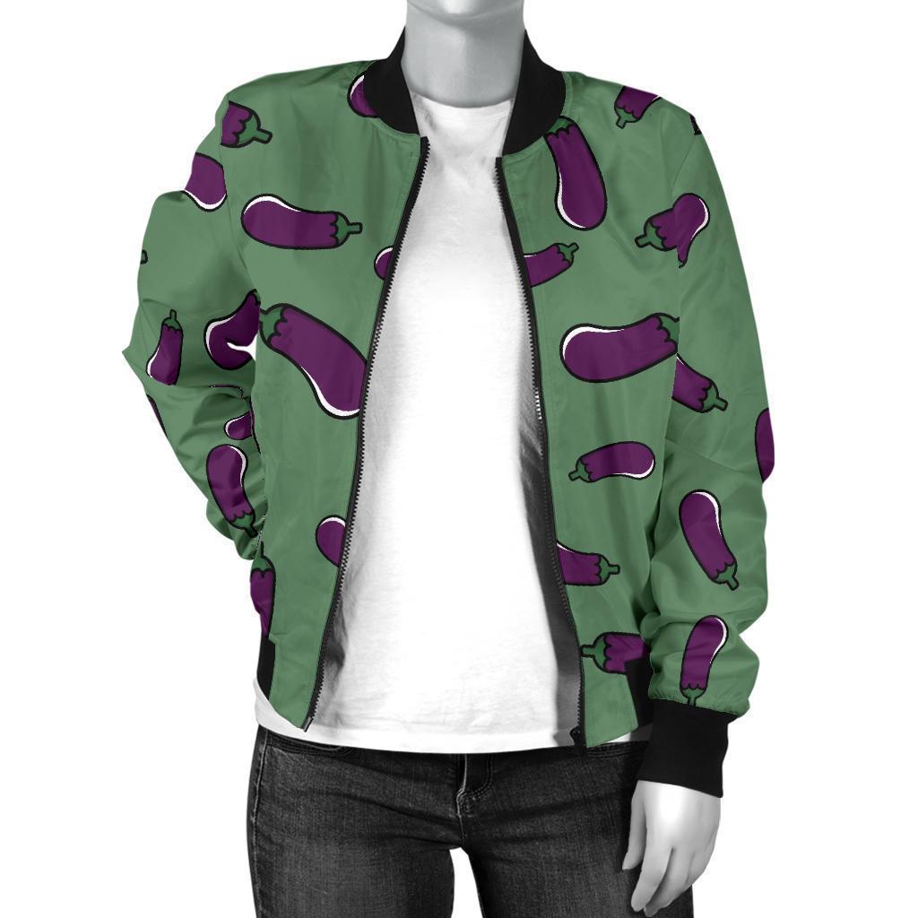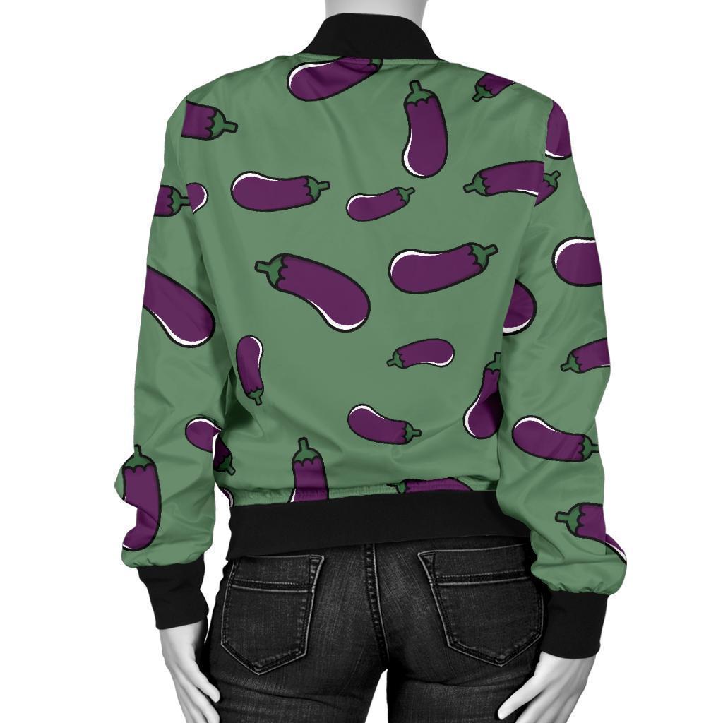 Eggplant Pattern Print Women Casual Bomber Jacket