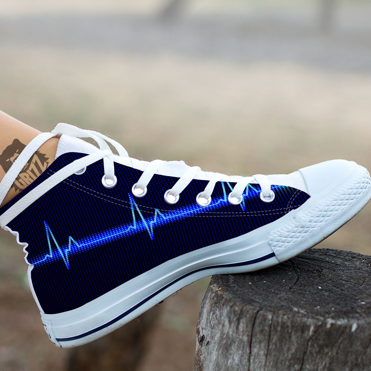 Electrocardiogram Heartbeat Print White High Top Shoes