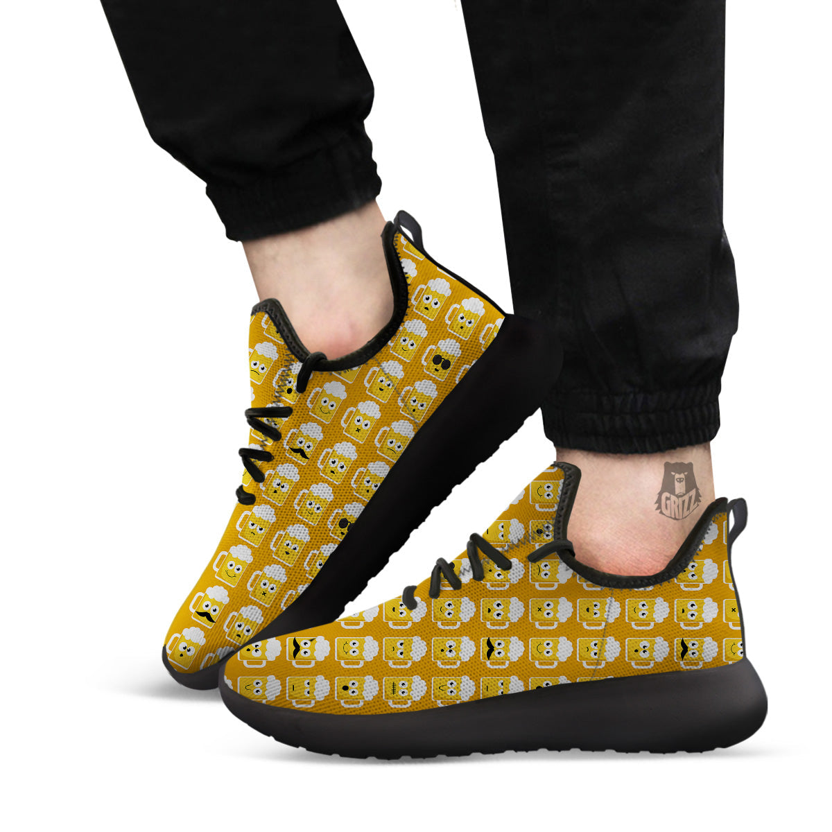 Emoji Beer Mugs Yellow Print Pattern Black Athletic Shoes