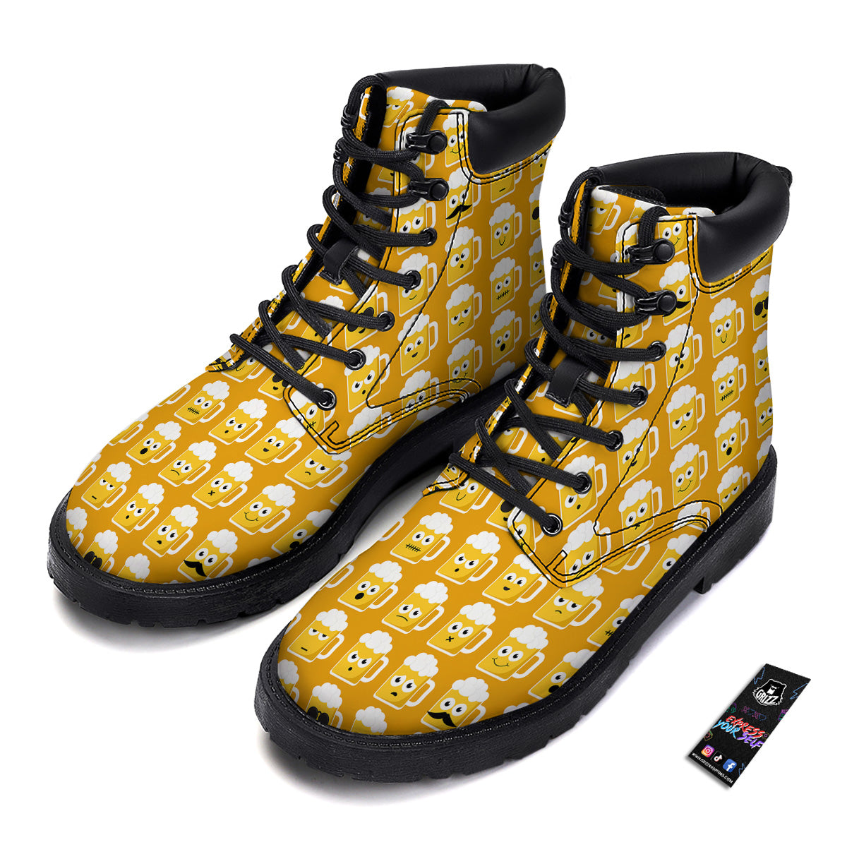 Emoji Beer Mugs Yellow Print Pattern Boots