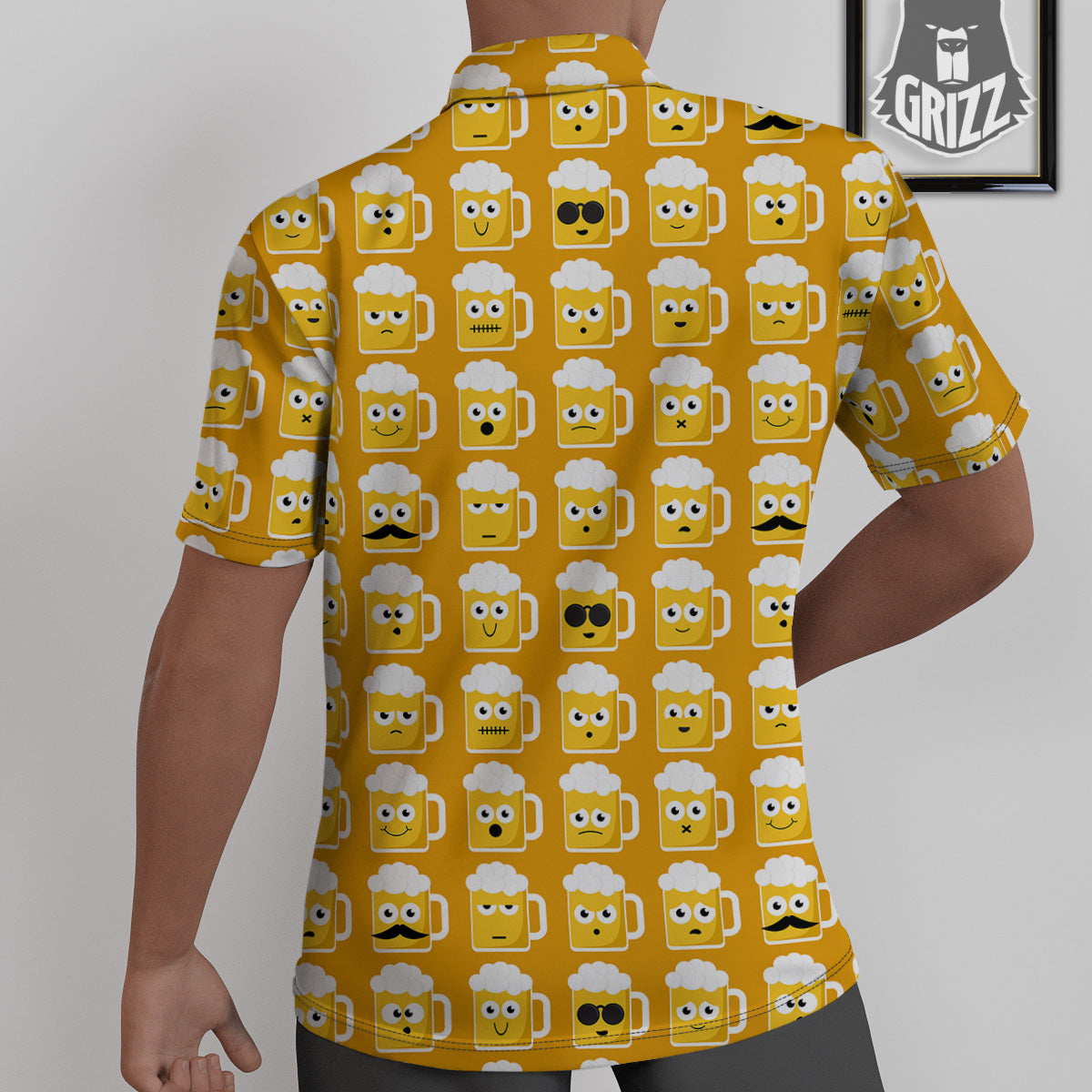 Emoji Beer Mugs Yellow Print Pattern Untucked Shirts