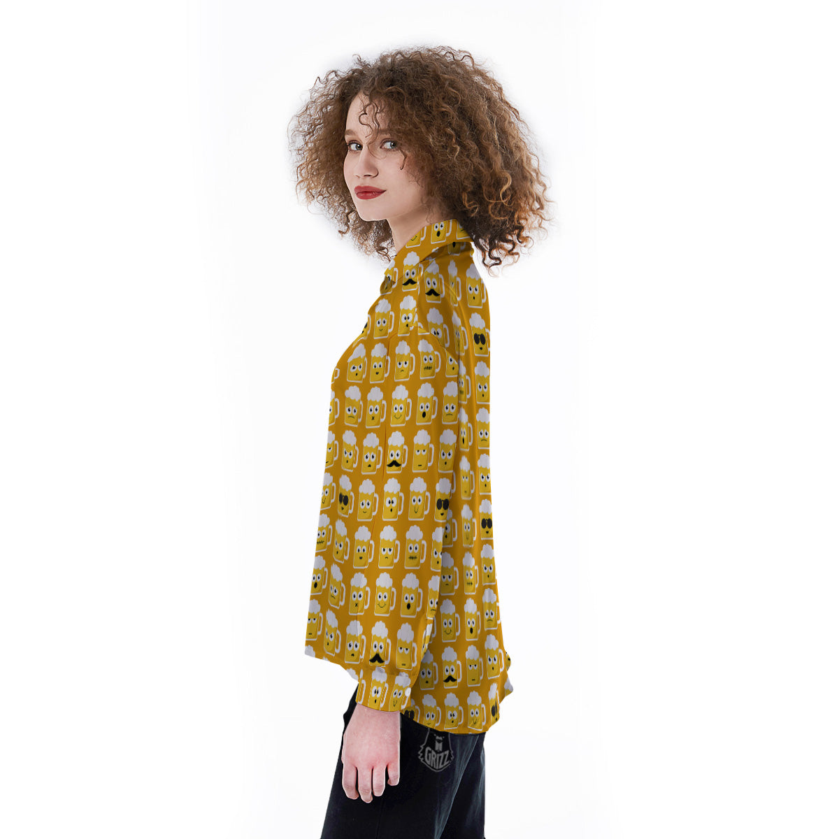 Emoji Beer Mugs Yellow Print Pattern Women's Long Sleeve Shirts