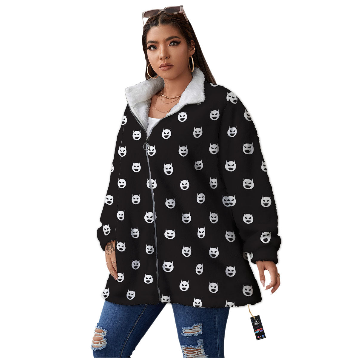 Emoji Devil Print Pattern Women's Sherpa Jacket