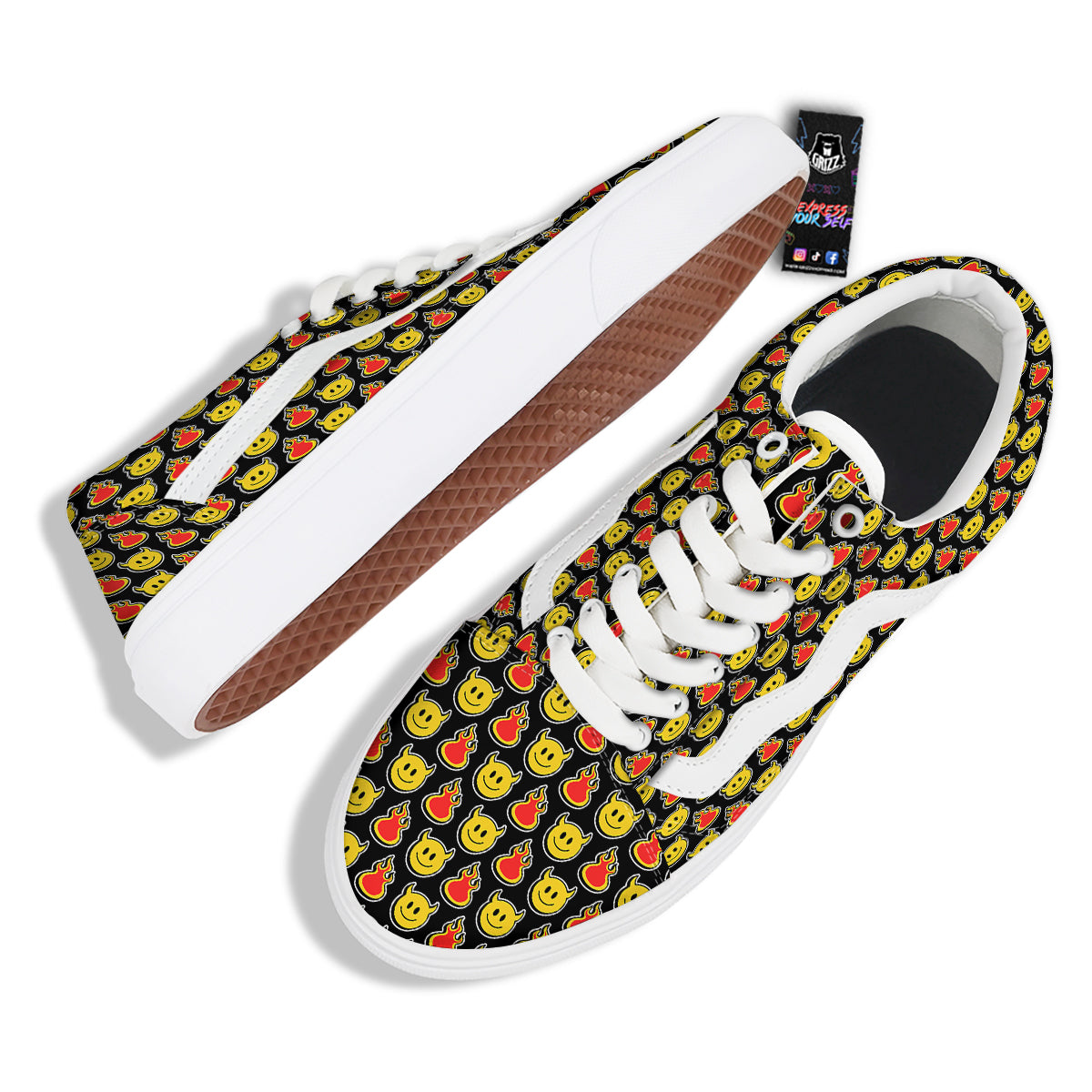Emoji Fire And Devil Cute Print Pattern Skate Shoes