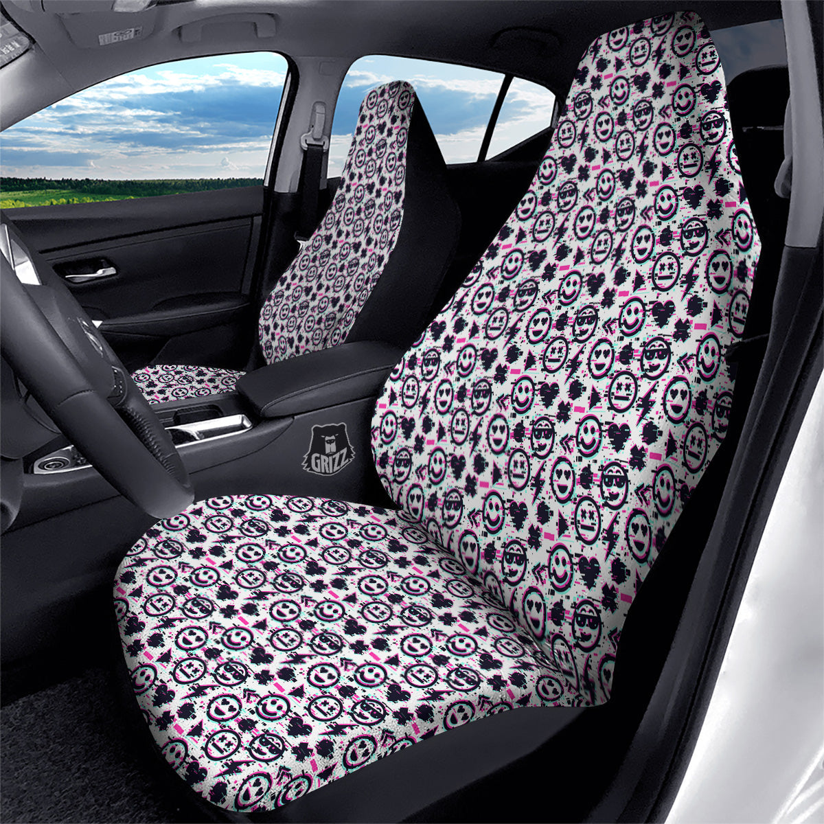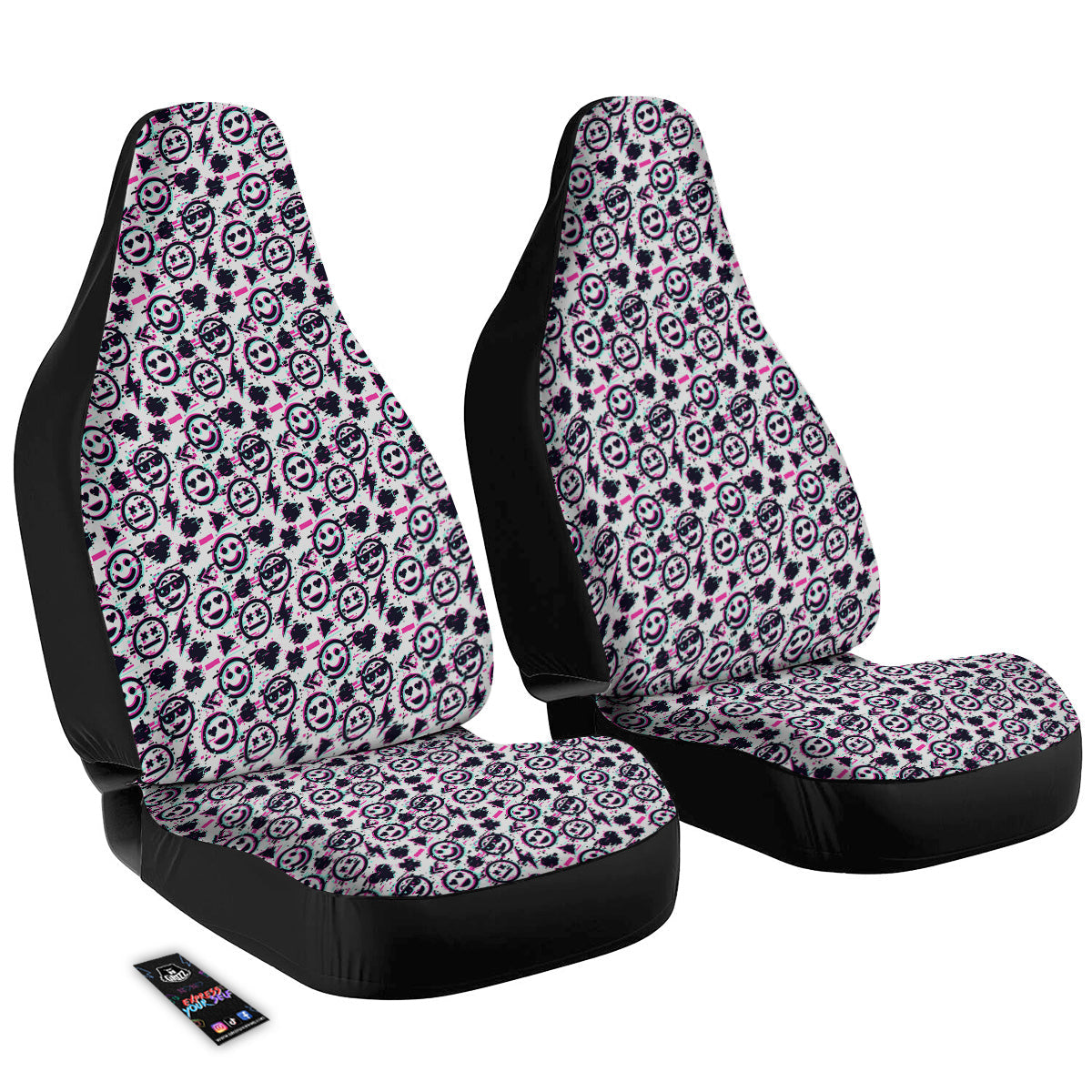 Emoji Glitch Neon Print Pattern Car Seat Covers