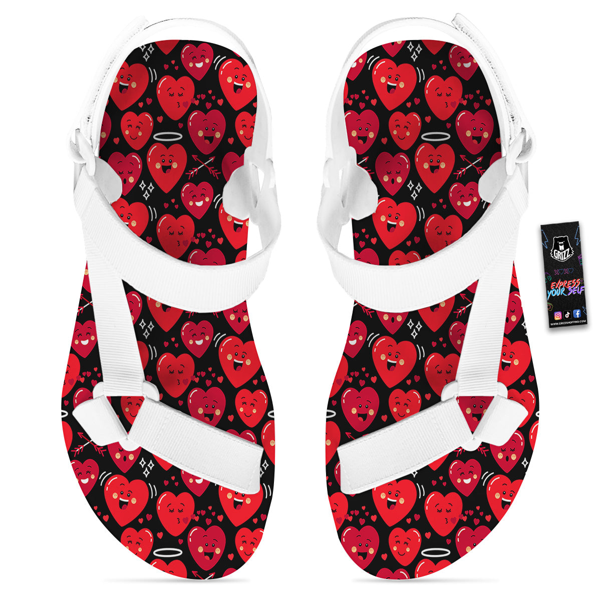 Emoji Hearts Print Pattern White Open Toe Sandals