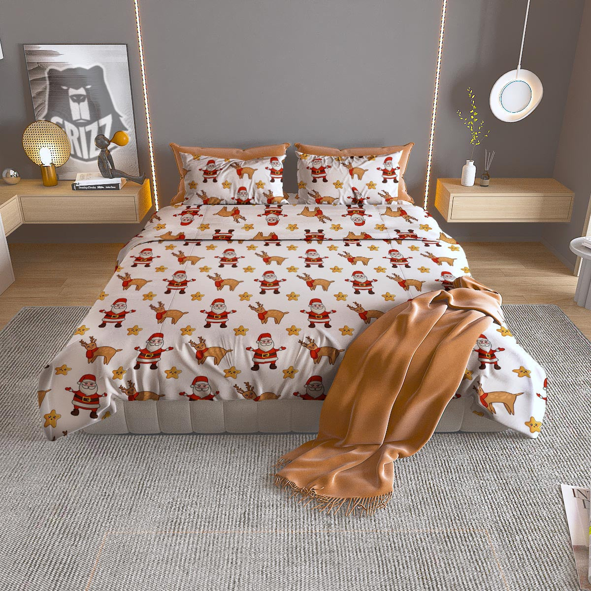 Emoji Reindeer And Santa Claus Print Pattern Duvet Cover Bedding Set