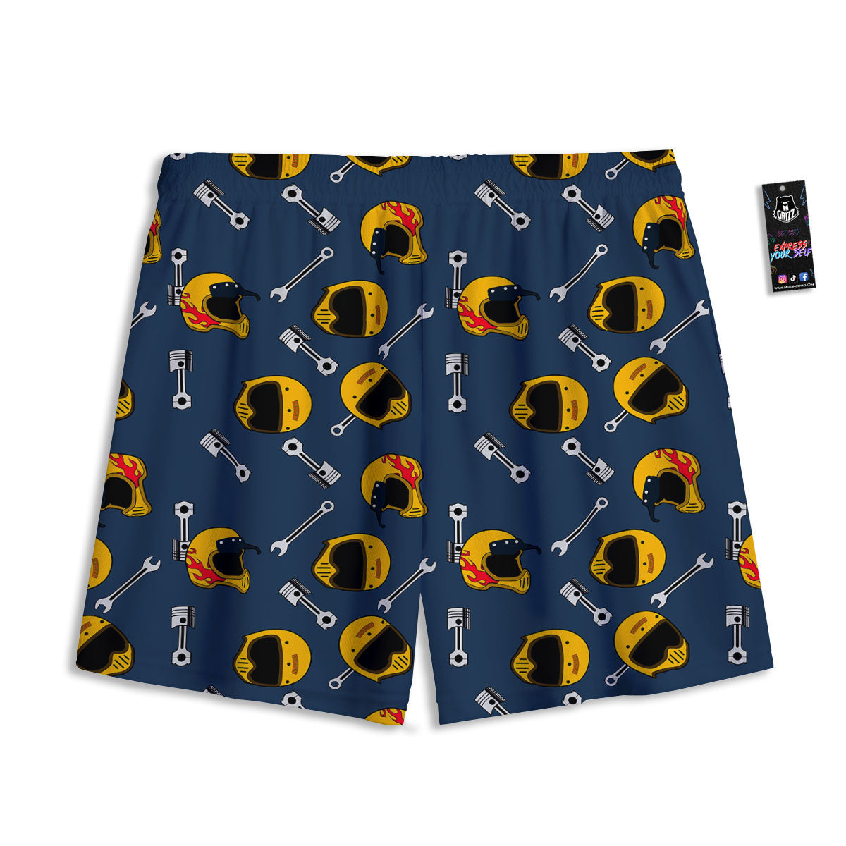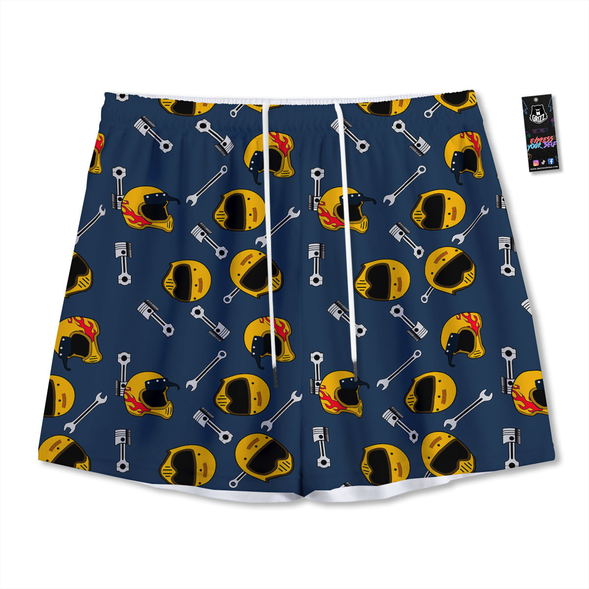 Equipment Motorcycle Print Pattern Mesh Shorts