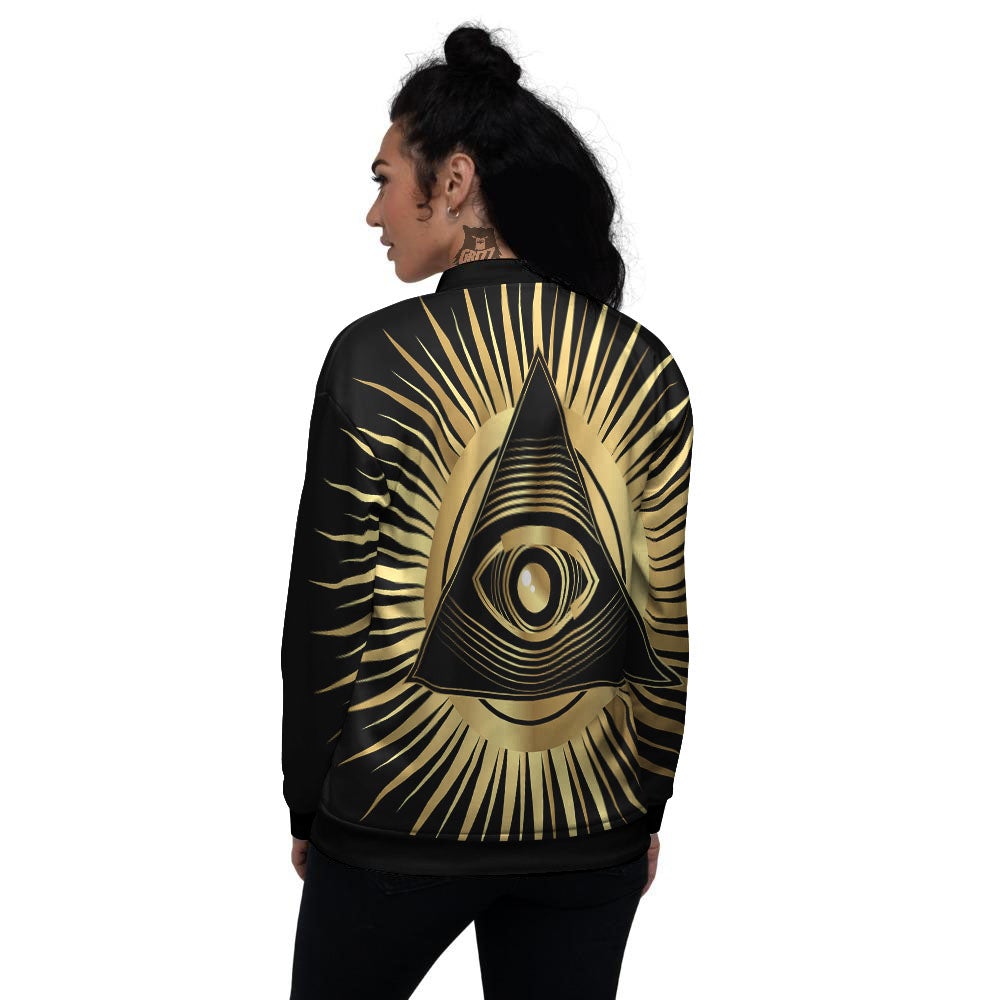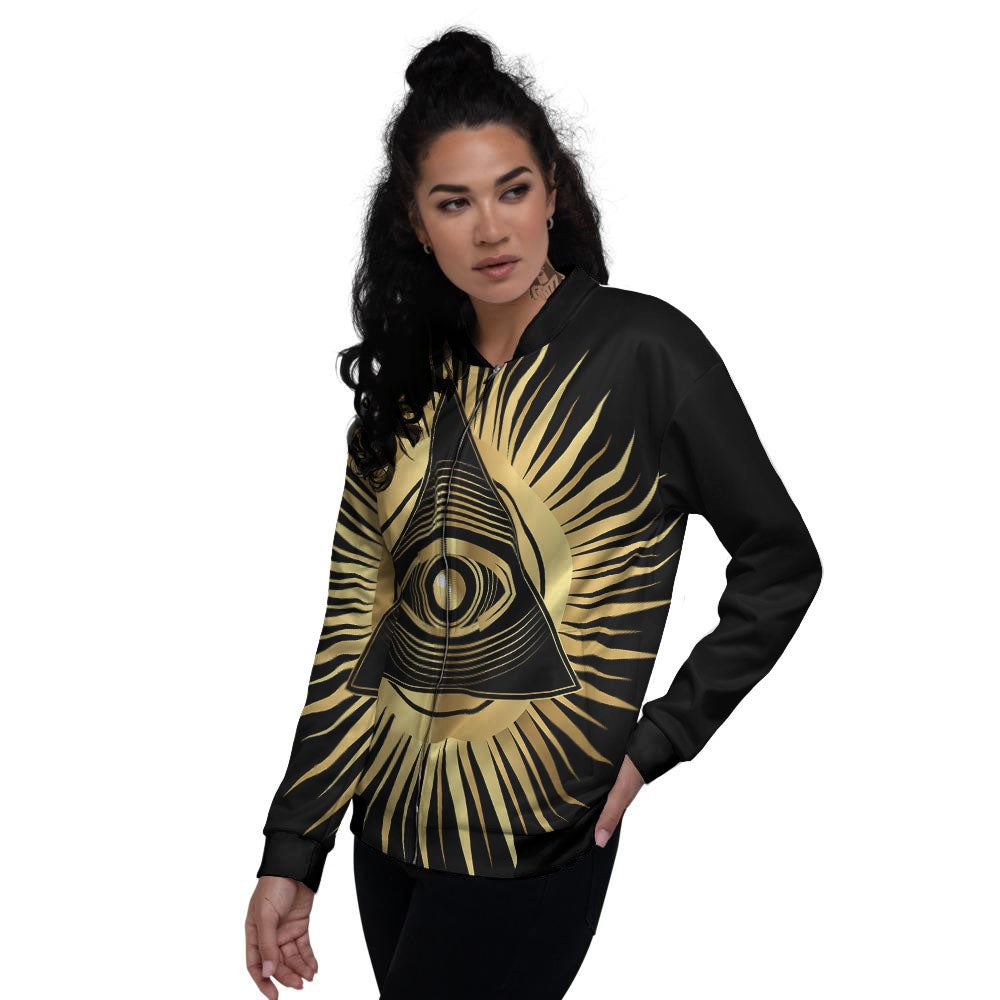Eye Of Providence Symbol Illuminati Print Women's Bomber Jacket