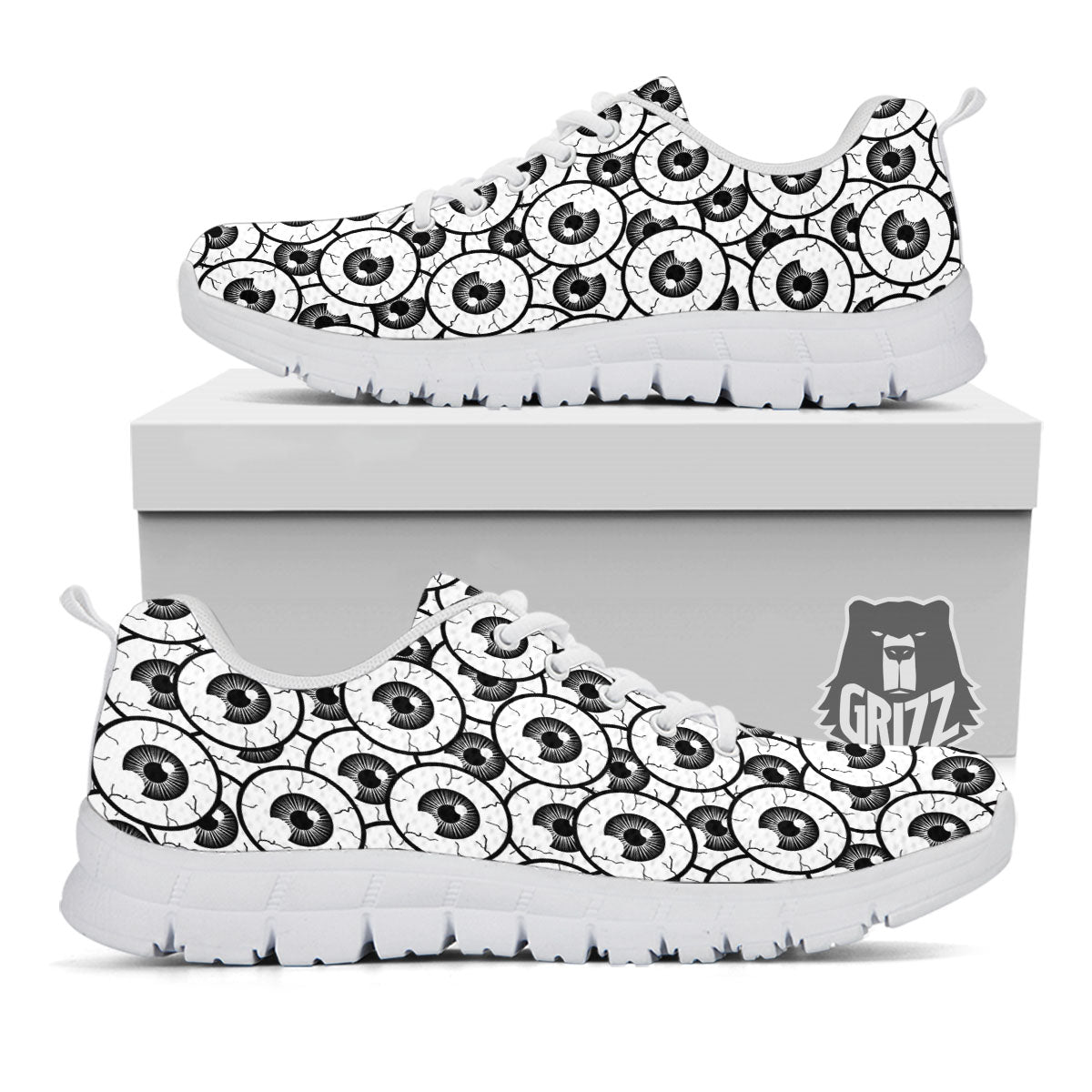 Looking for a unique sneaker? Check out our Eyeball Print Pattern White Sneakers at Grizzshopping. Our sneaker are handcrafted to the highest quality standards that custom made for you