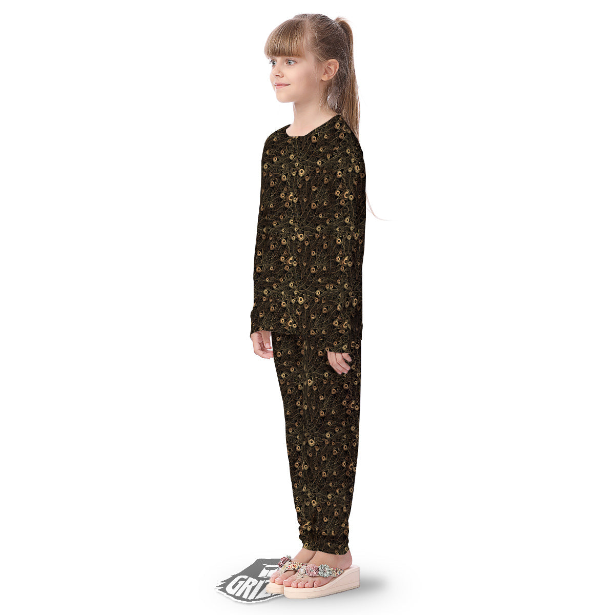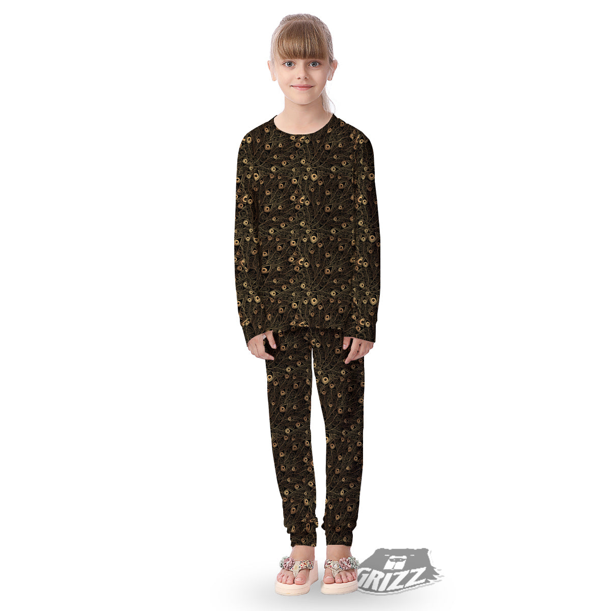Feather Gold And Black Print Pattern Kid's Pajamas
