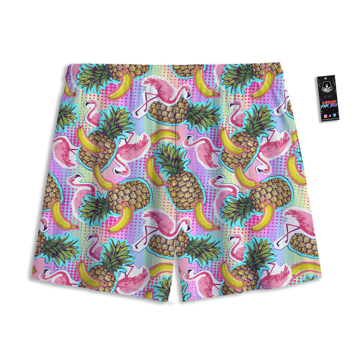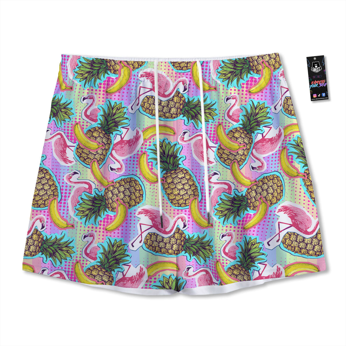 Flamingo And Pineapple Rainbow Print Pattern Mesh Shorts