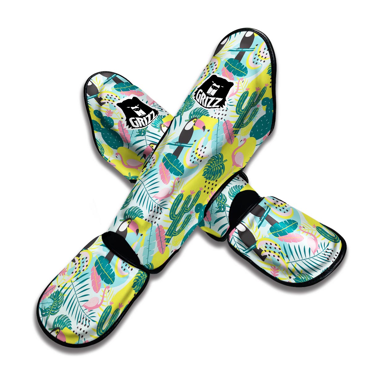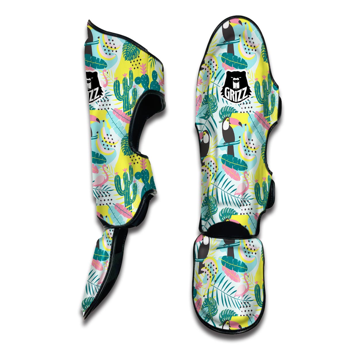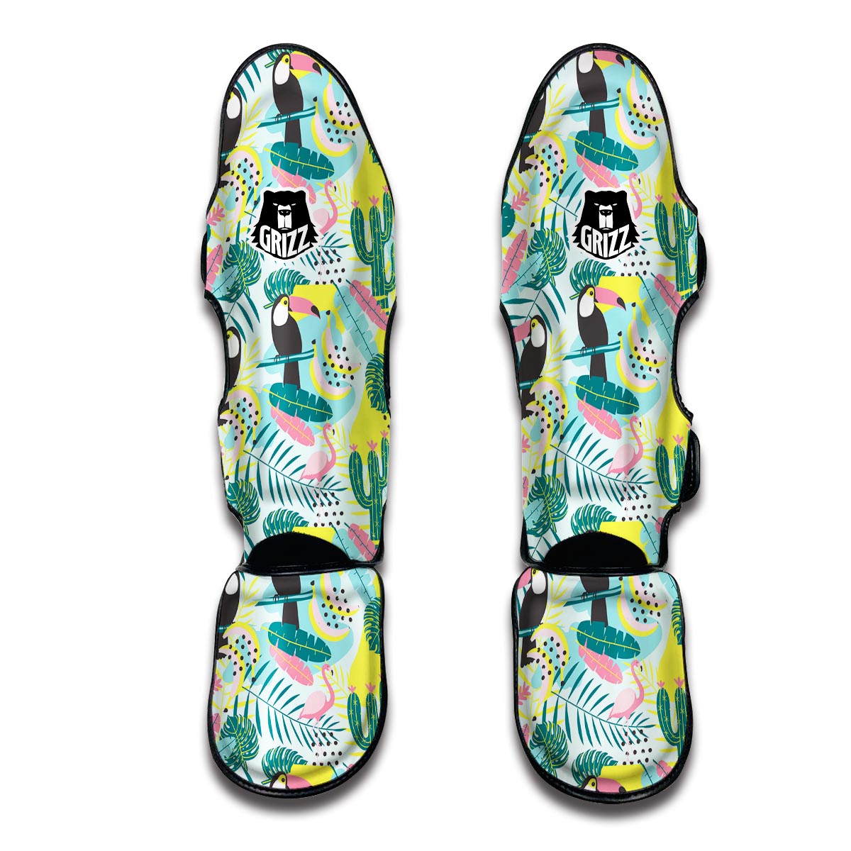 Flamingo Catus Tropical Hawaiian Pineapple Print Muay Thai Shin Guards