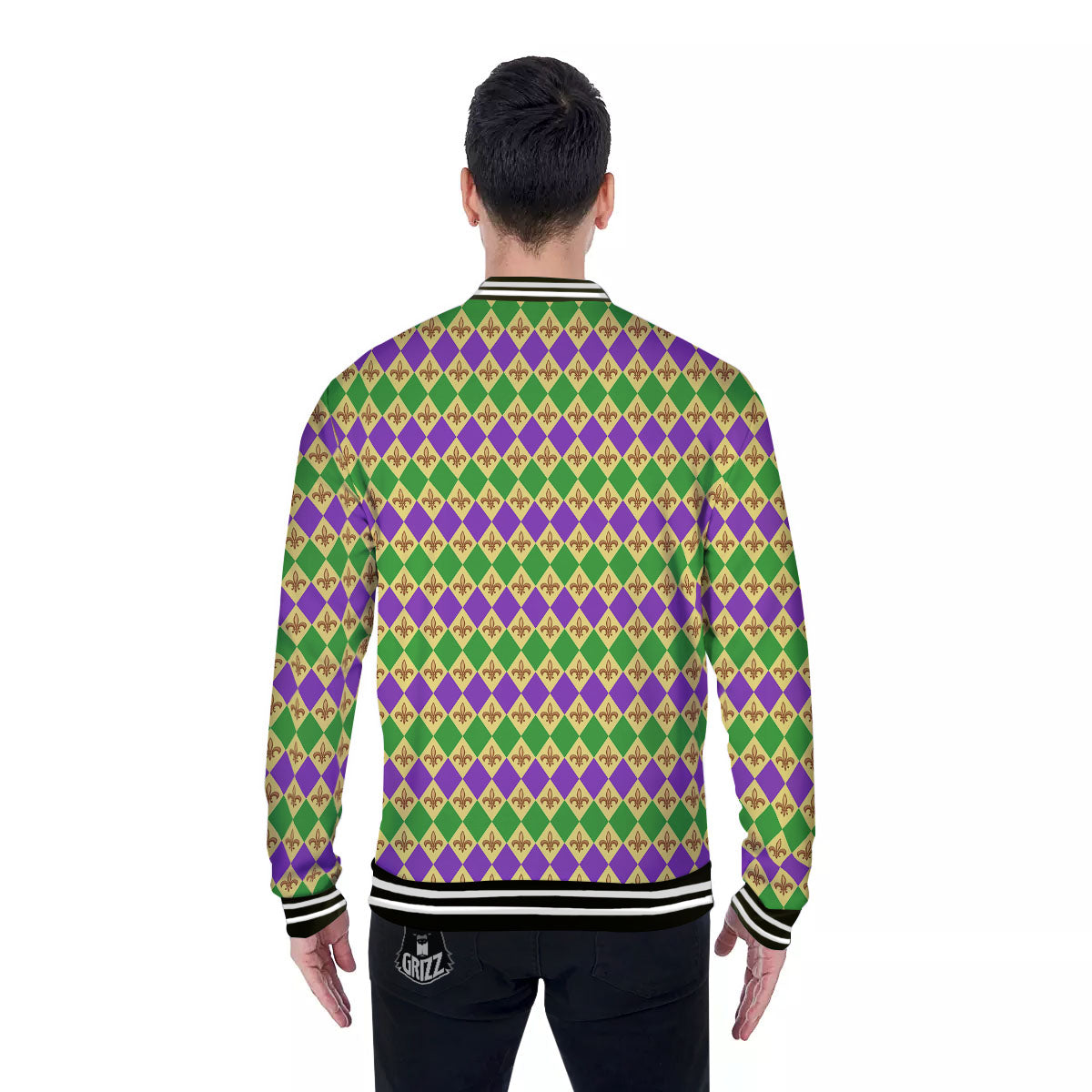 Fleur De Lis Mardi Gras Print Pattern Baseball Jacket