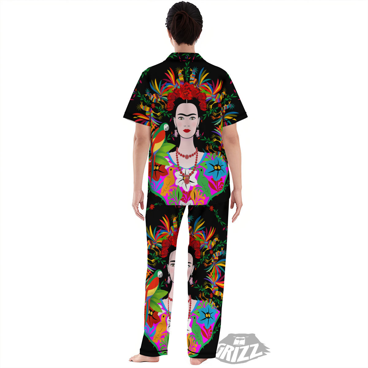 Floral And Frida Kahlo Print Women's Pajamas Set