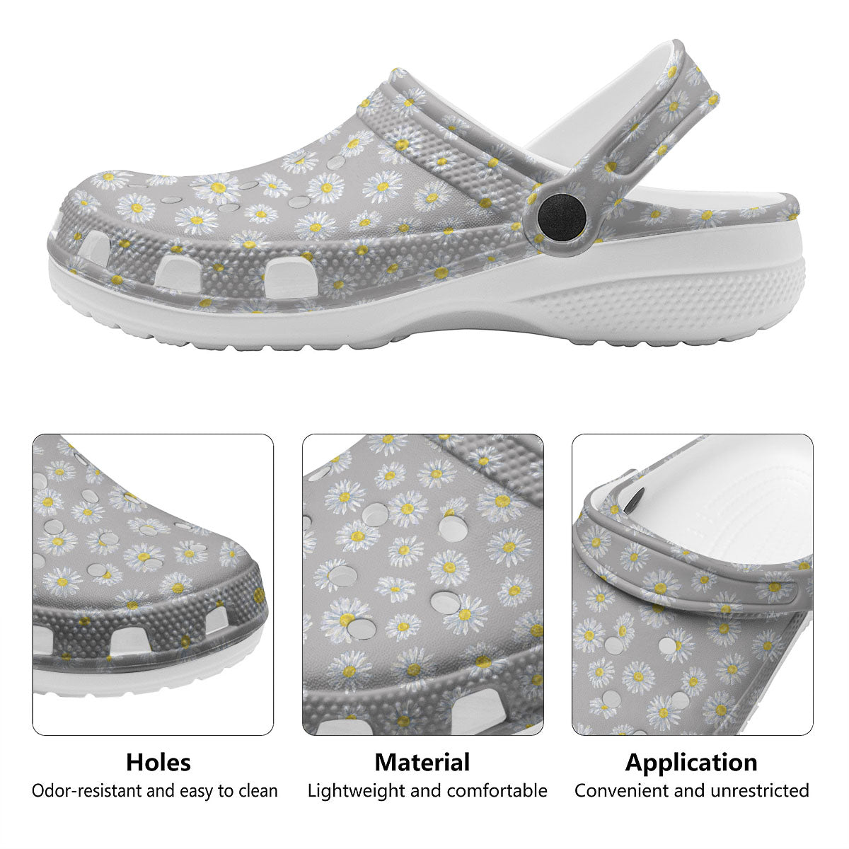 Looking for unique clog? Check out our Floral Grey Daisy Print Pattern Clog at Grizzshopping. Our clog are handcrafted to the highest quality standards and custom-made for you