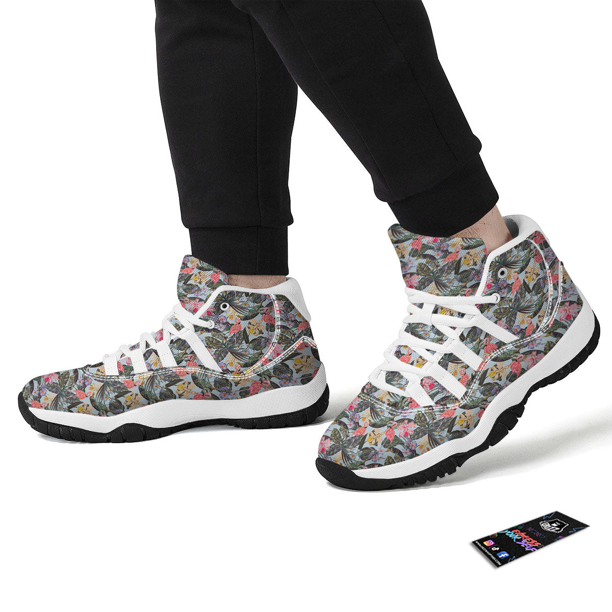 Floral Hawaiian And Flamingo Print White Bball Shoes